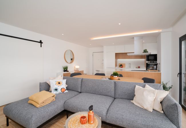 La entrada del apartamento le da la bienvenida de inmediato al espacio de estar abierto con grandes ventanas que conducen a la terraza privada de comedor al aire libre. Bellamente decorado con tonos suaves y muebles cómodos, el amplio espacio de estar abierto lo invita a sentarse en los mullidos sofás y relajarse frente a la televisión, mientras que una elegante mesa de comedor se encuentra adyacente a la cocina, creando el lugar perfecto para deliciosas cenas. Las grandes ventanas hacen que la luz del día entre en el apartamento y a través de las cuales simplemente puede salir a la terraza privada de comedor. La cocina de estilo galería está bien equipada con una barra de desayuno que divide el espacio de estar y se complementa con una selección de electrodomésticos y utensilios, ¡perfecta para cualquier chef de vacaciones!