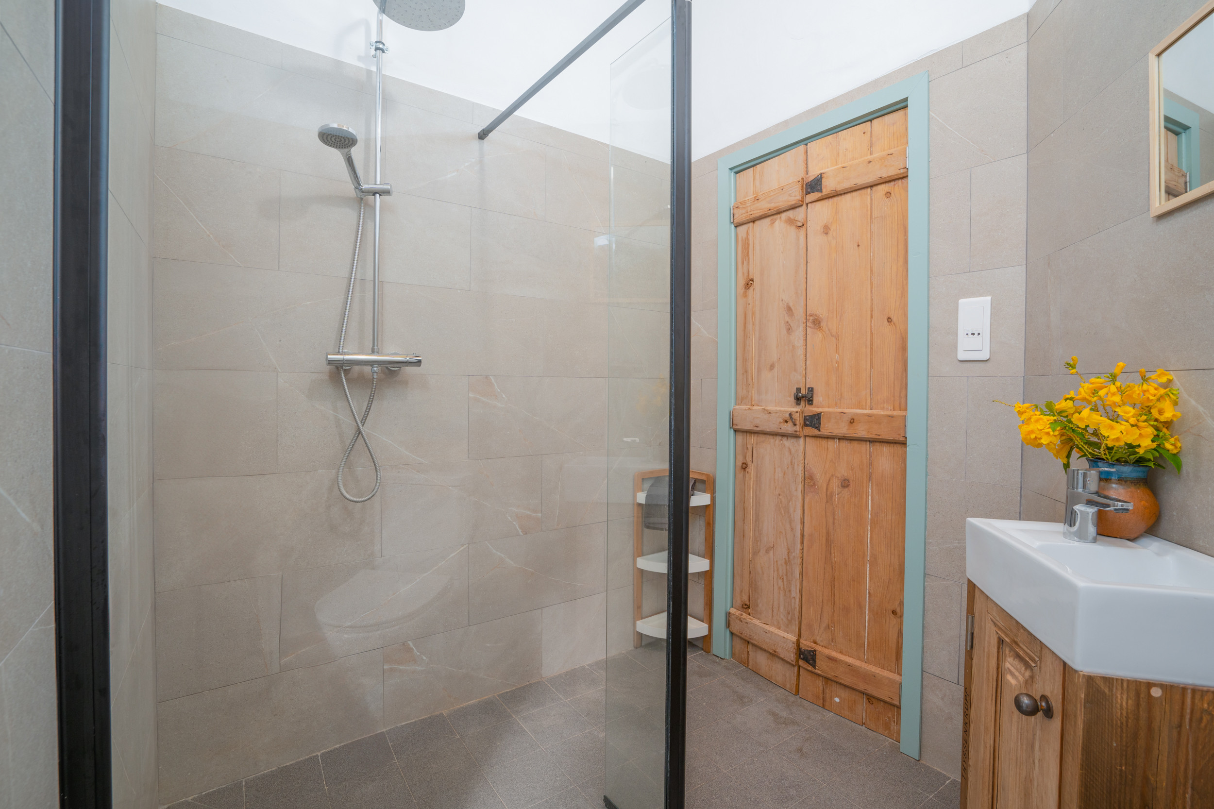 La habitación king-size presume de un armario y un baño privado con una ducha rústica de paseo y el sofá-cama proporciona espacio adicional para dormir si es necesario: ¡salga de la cama y sumérgase en la refrescante piscina justo fuera de la puerta del dormitorio! Combinando encanto con comodidad moderna, entre las características rústicas, el aire acondicionado mantiene el espacio fresco y cómodo en las cálidas noches de verano o para estancias de invierno, la estufa de leña crea una atmósfera acogedora e invitante, perfecta para acurrucarse en las noches frías. 2 sofás-cama individuales disponibles en este cottage para huéspedes adicionales.