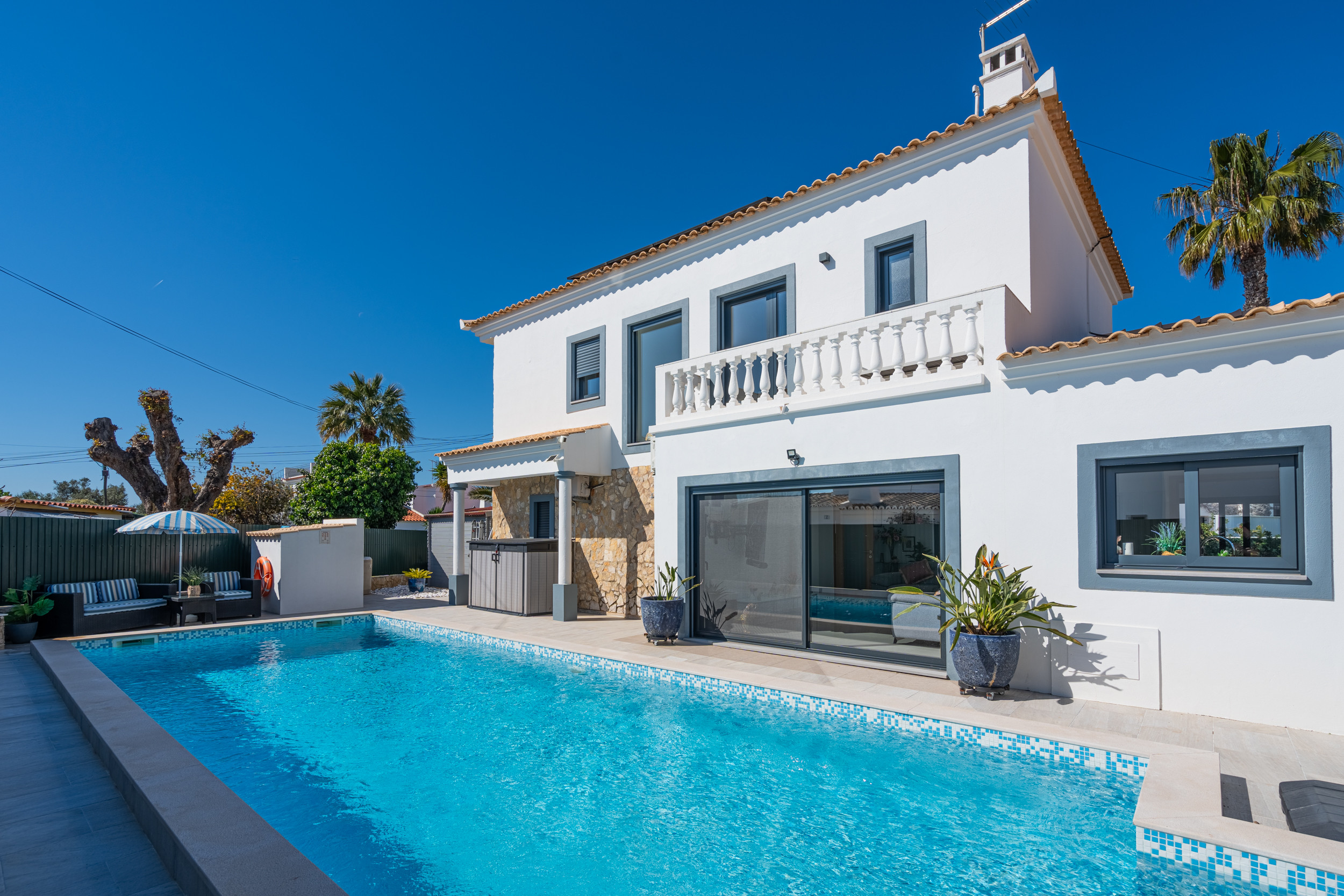 Una impresionante villa familiar situada cerca del centro de Tavira. La decoración interior es fresca y luminosa con áreas de estar de planta abierta y una cocina/barra de desayuno espléndida. 6 huéspedes están cómodamente alojados, con 1 dormitorio convenientemente ubicado en la planta baja. Las instalaciones exteriores incluyen una preciosa piscina de infinito, comedor al aire libre y un cómodo área de asientos junto a la piscina. Un paseo de 20 minutos le llevará a restaurantes, tiendas tradicionales y el ferry a la preciosa Isla de la Playa de Tavira.