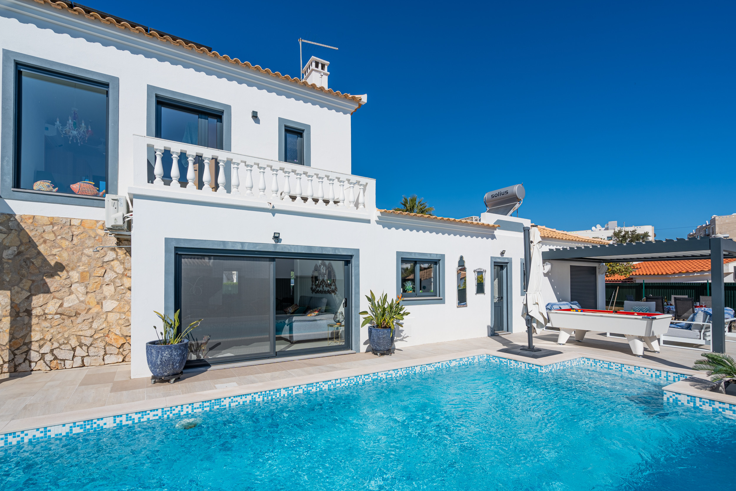 The house is amazing. Everything you could want, and more. Clean and very well equipped. Each bedroom having an en-suite bathroom was perfect for our group. Comfy beds, comfy sofa and excellent outdoor facilities. One of the best houses in Tavira we have stayed in.