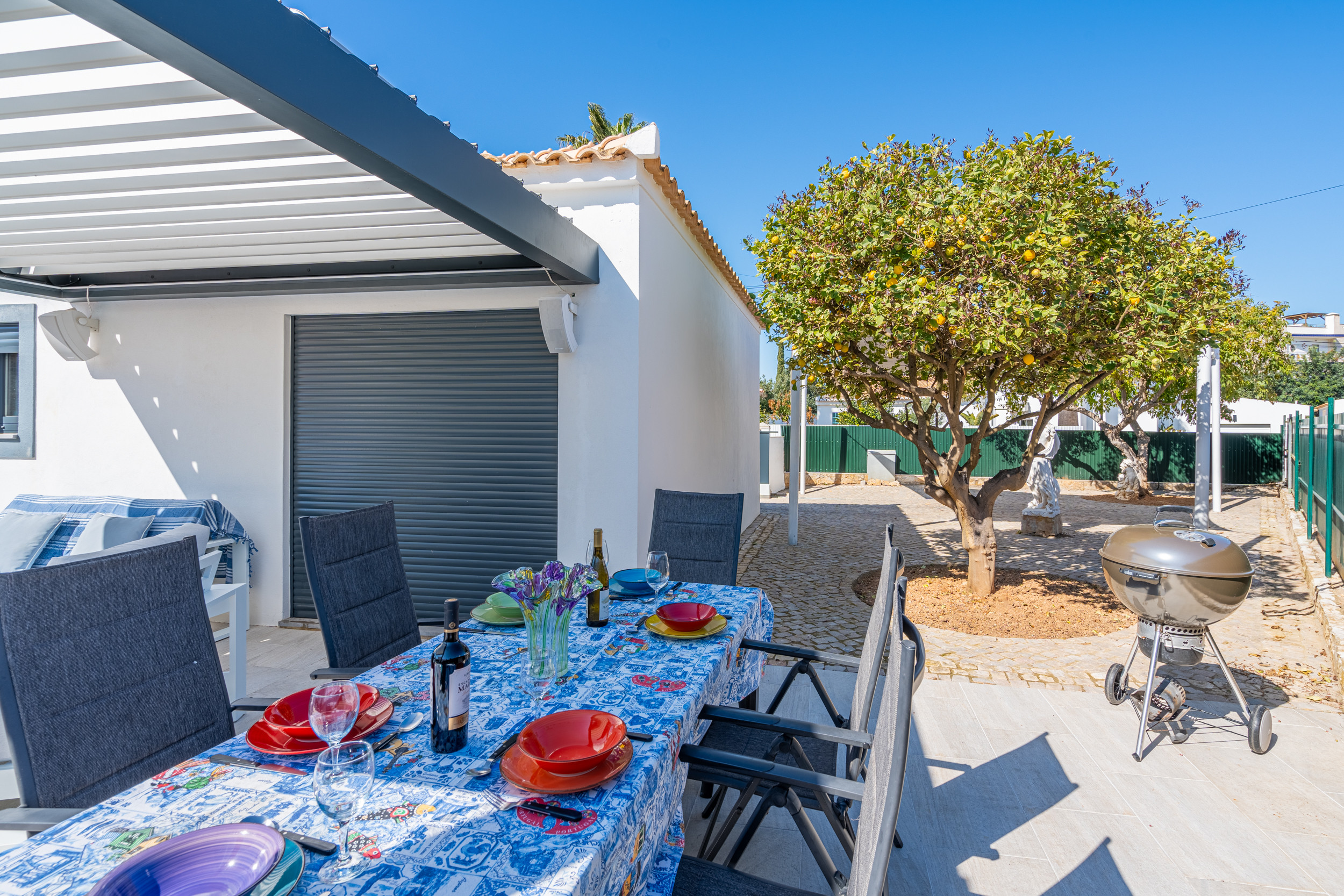 Para la experiencia alfresco definitiva, reúnanse alrededor de la mesa y las sillas para disfrutar de deliciosas comidas preparadas en la barbacoa tradicional. Ya sea en cálidas noches de verano o tardes ventosas, este remanso al aire libre es ideal para la relajación y la socialización.