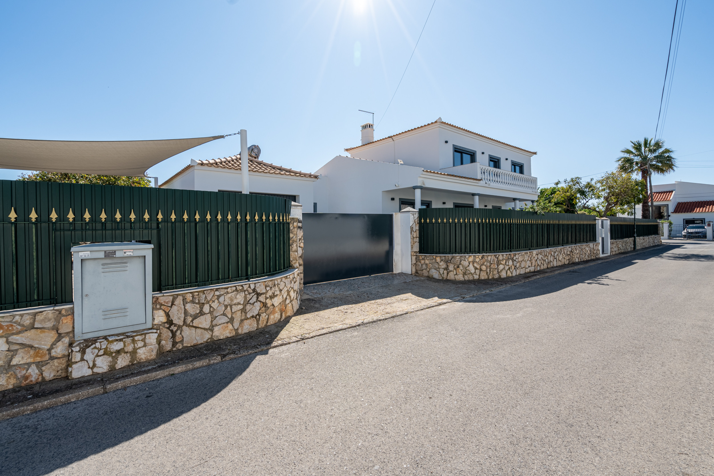 La villa está cerrada con seguridad, ofreciendo estacionamiento justo frente a la casa para su comodidad. Tome el camino junto a la casa para llegar a las amplias terrazas y la piscina infinita reluciente con su agua clara y azul. Las tumbonas lo invitan a tomar el sol, mientras que los sofás acogedores ofrecen un lugar perfecto para relajarse y absorber la atmósfera serena.