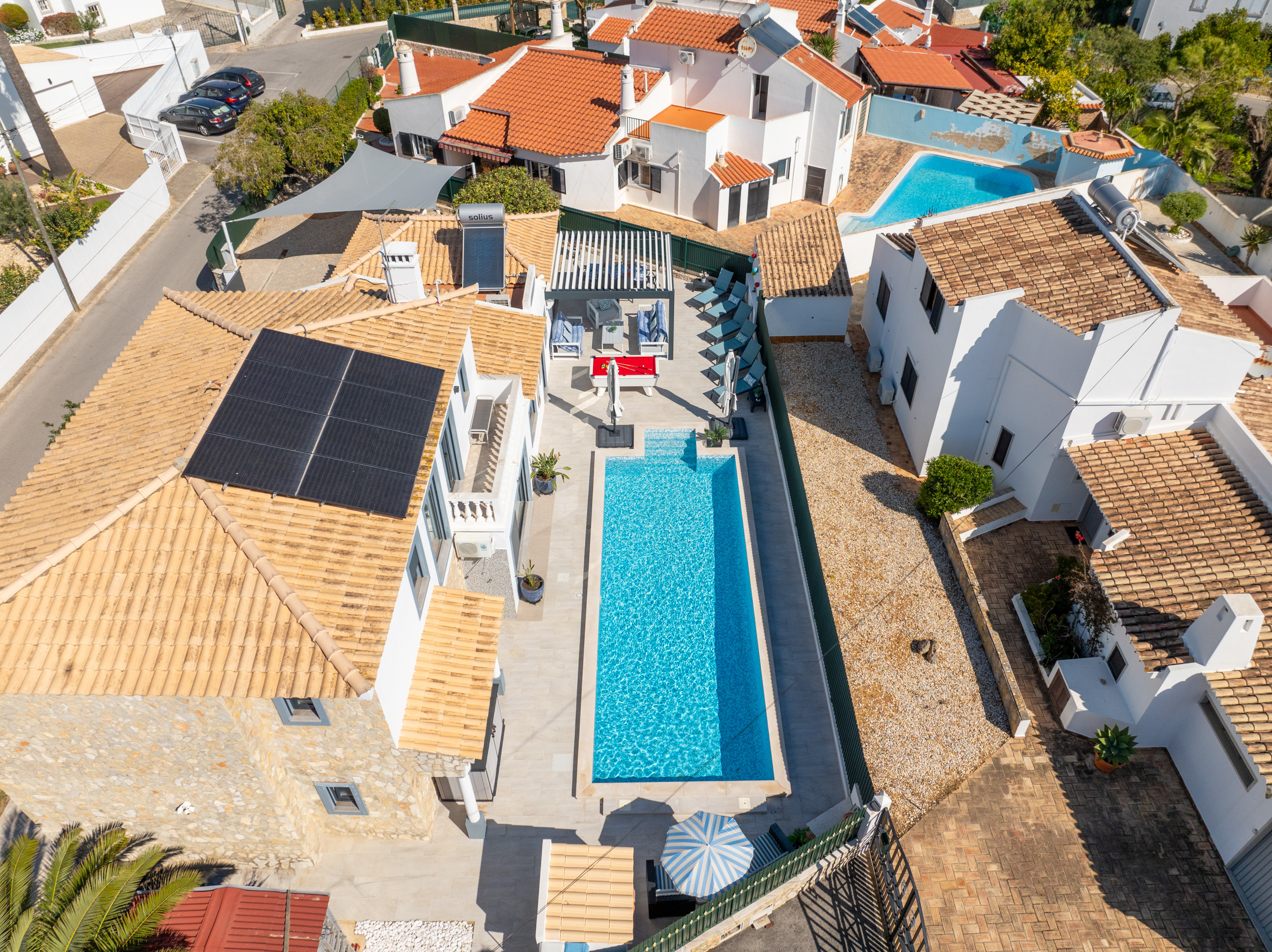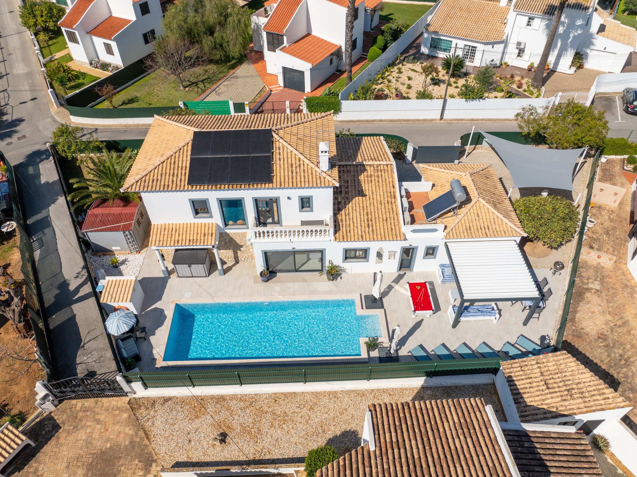 Salga al exterior para disfrutar de una impresionante variedad de instalaciones al aire libre. La atractiva piscina azul de 10m x 5m invita a nadar y jugar con tranquilidad. Tumbonas están dispersas por las terrazas circundantes para los amantes del sol. Tanto adultos como niños encontrarán mucho que disfrutar en este espacio al aire libre, incluyendo una mesa de billar, instalaciones para comer al aire libre con sombra opcional, y una barbacoa de tapa redonda para disfrutar de comida y vino en una cálida noche de verano.