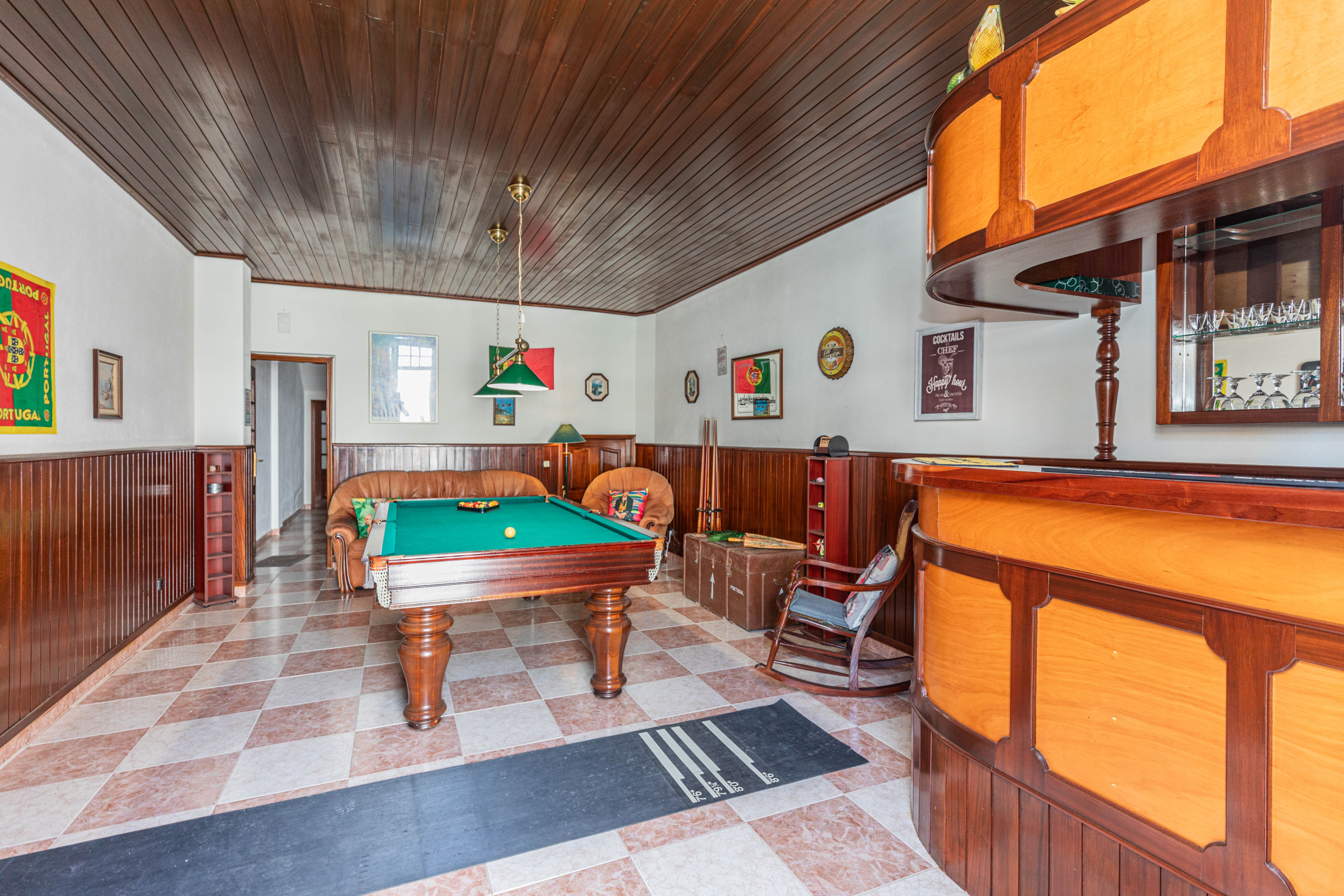 El área exterior está ubicada en la parte trasera en un nivel inferior, accesible desde el salón a través de escaleras o por la sala de juegos. Con una sala tradicional de snooker, esta instalación ofrece un refugio fresco del sol, mientras que la terraza trasera cuenta con tumbonas para tomar el sol, asientos cómodos para leer y relajarse, y un espacio de comedor al aire libre sombreado para comidas familiares. Una barbacoa de carbón es perfecta para aquellos a quienes les gusta cocinar al aire libre. Con sus acogedores arreglos de asientos y sombra suave, proporciona un entorno idílico para relajarse en cualquier momento del día, pero especialmente cuando cae la tarde, con su copa de atardecer favorita en la mano.