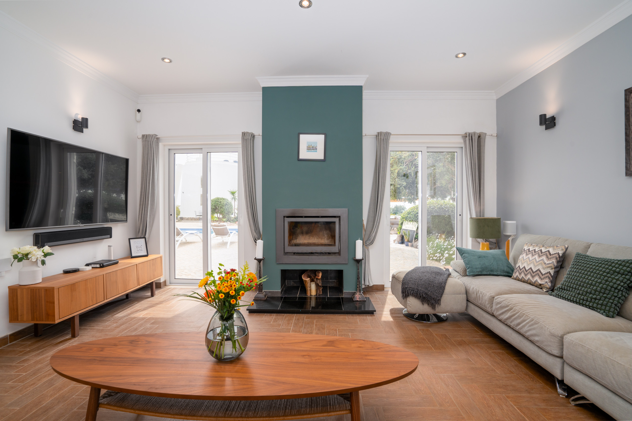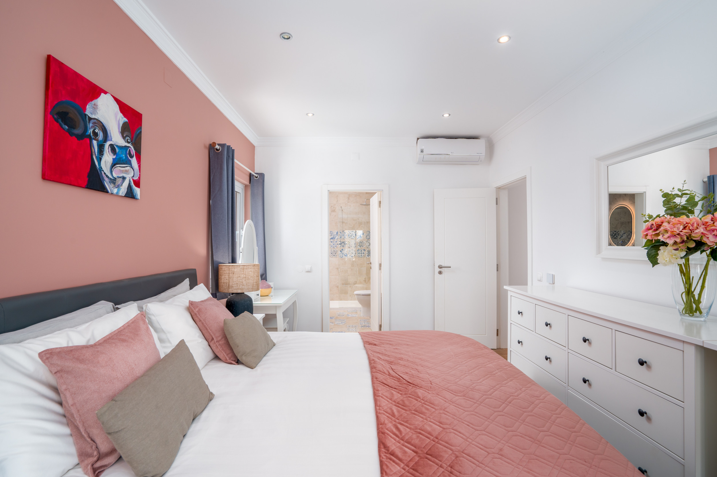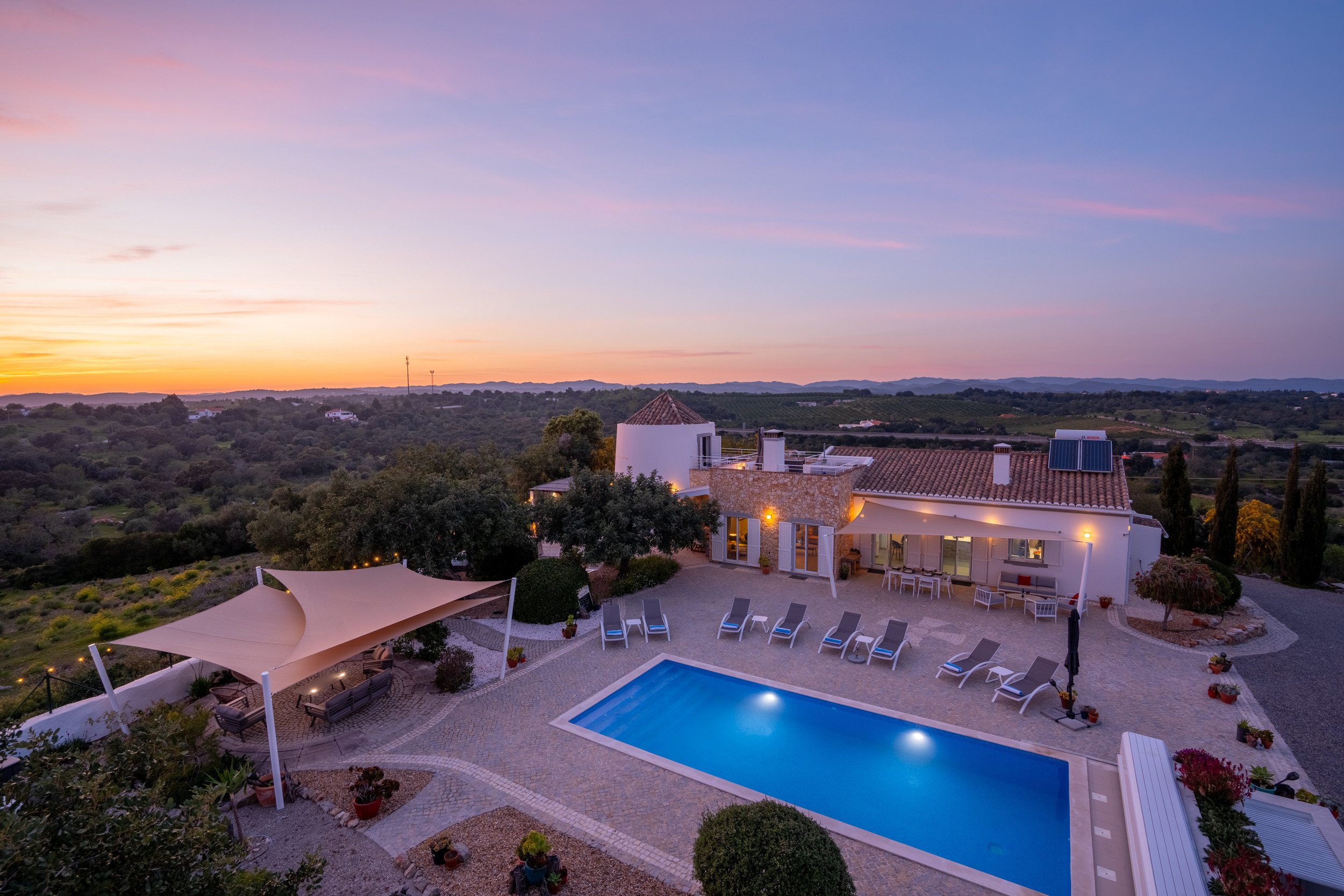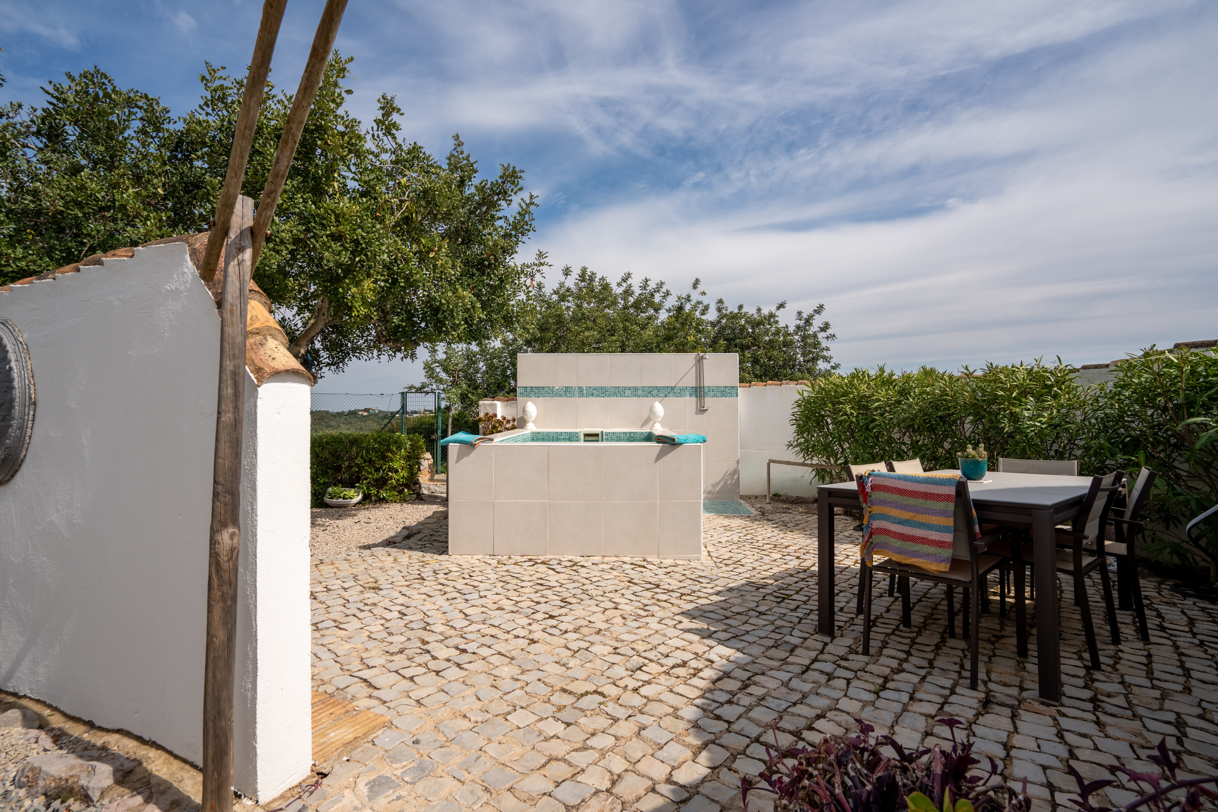 Una villa familiar espaciosa ubicada en un área residencial tranquila en el perímetro de la ciudad de Tavira. Situada en una colina con una impresionante vista panorámica, el interior de la villa está amueblado de manera sencilla y elegante, con habitaciones espaciosas complementadas por agradables instalaciones al aire libre que incluyen comedor al fresco, una piscina bordeada de setos y tumbonas. A un paseo de 20 minutos, puede llegar a restaurantes, tiendas pintorescas y al barco a la Isla de la Playa de Tavira, reconocida por sus arenas doradas y aguas vibrantes.