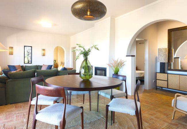 Impresionante vista al océano, propiedad de tres dormitorios y tres baños en suite, a solo cinco minutos en coche del centro de Tavira. Verdaderamente, un santuario magnífico junto al mar, situado en la cima de la colina con vistas a la hermosa extensión de naranjales y el Atlántico. Decorado con gusto con muebles de alta gama, fabricados en Portugal, Bali, India y Marruecos. Piscina de agua salada climatizada durante todo el año, así como un amplio patio con 1000 metros cuadrados de espacio interior y exterior.