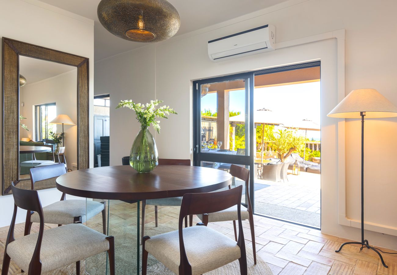 Entra y déjate recibir por el interior fresco y luminoso que transmite una sensación de tranquilidad. La distribución diáfana conecta la cocina a la derecha y conduce al acogedor comedor/salón a la izquierda. Sumérgete en los mullidos sofás y disfruta del entretenimiento en la televisión mientras las amplias ventanas de la terraza ofrecen vistas a la piscina privada.