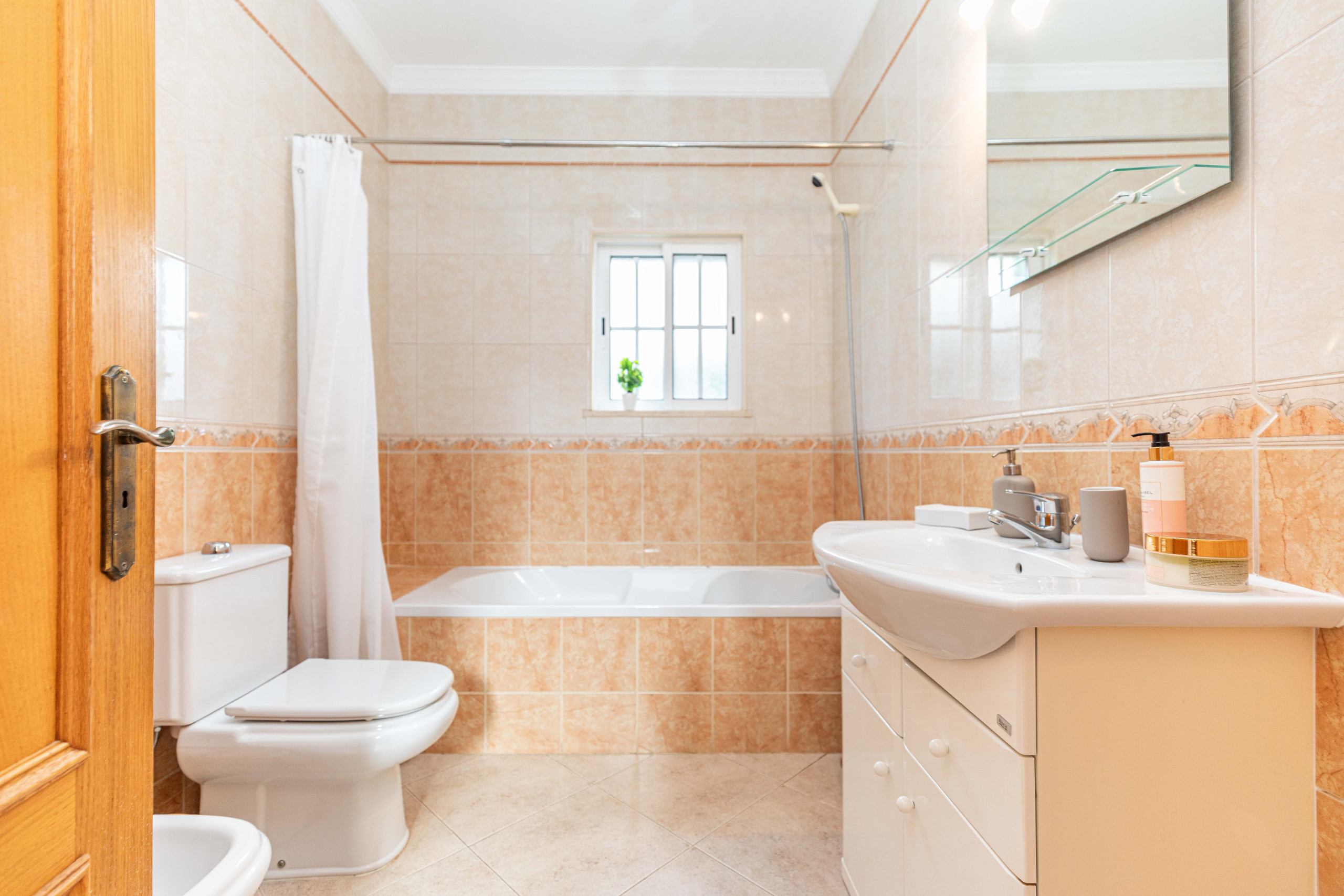Comience con un cóctel en el bar completamente equipado que cuenta con una máquina de hielo y una nevera de vinos y relájese en taburetes altos o en los sofás junto a la piscina. La amplia piscina de 6x12m, bordeada por un pavimento tradicional de calçada, está rodeada de una selección de tumbonas. Hay dos áreas de comedor al aire libre, y los huéspedes pueden elegir entre una barbacoa tradicional o una parrilla de gas moderna para las comidas. ¡A los niños les encantará explorar el jardín, que cuenta con una mesa de picnic bajo los árboles y un estanque con peces orientales vibrantes. Cuando cae la noche, una iluminación suave ilumina el jardín para que los adultos salgan a jugar! Perfecto para familias extensas, esta villa garantiza la comodidad con cada detalle pensado.