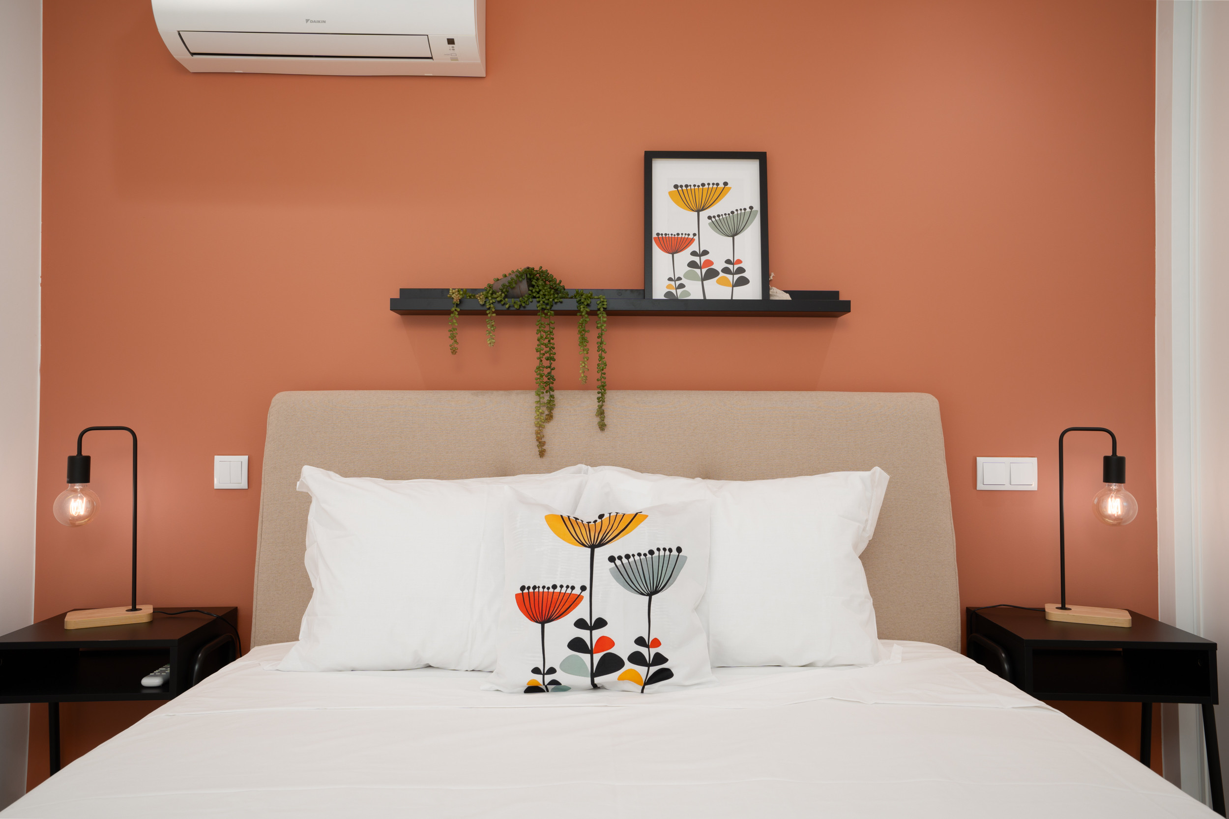 L\'accès à l\'appartement se fait par des escaliers, avec une entrée côté rue et une entrée d\'appartement privée au deuxième étage. À partir du hall d\'entrée, vous êtes immédiatement accueilli par un décor moderne et chic avec de beaux meubles. Le logement se compose d\'un magnifique salon ouvert orné d\'un beau canapé blanc et d\'un téléviseur, avec 2 fauteuils moelleux attrayants qui s\'ouvrent en lits simples pour les invités supplémentaires. Un balcon entoure tout l\'appartement avec une table et des chaises où vous pouvez vous asseoir et profiter d\'un délicieux petit-déjeuner ou d\'un coucher de soleil. Il y a aussi un barbecue à charbon de bois pour les clients qui souhaitent se régaler d\'un poisson grillé ! La cuisine adjacente est spacieuse avec une table à manger intérieure, ainsi qu\'une gamme d\'appareils électroménagers, notamment une machine à laver, un lave-vaisselle, une cafetière et une abondance d\'ustensiles. La chambre est simple et élégante avec un lit double, des armoires encastrées et la climatisation, et l\'appartement dispose d\'une salle de bain séparée avec baignoire et douche suspendue. Superbe hébergement à un prix raisonnable, parfait pour un couple ou une jeune famille pour profiter d\'un environnement agréable avec de belles plages et des restaurants à proximité.