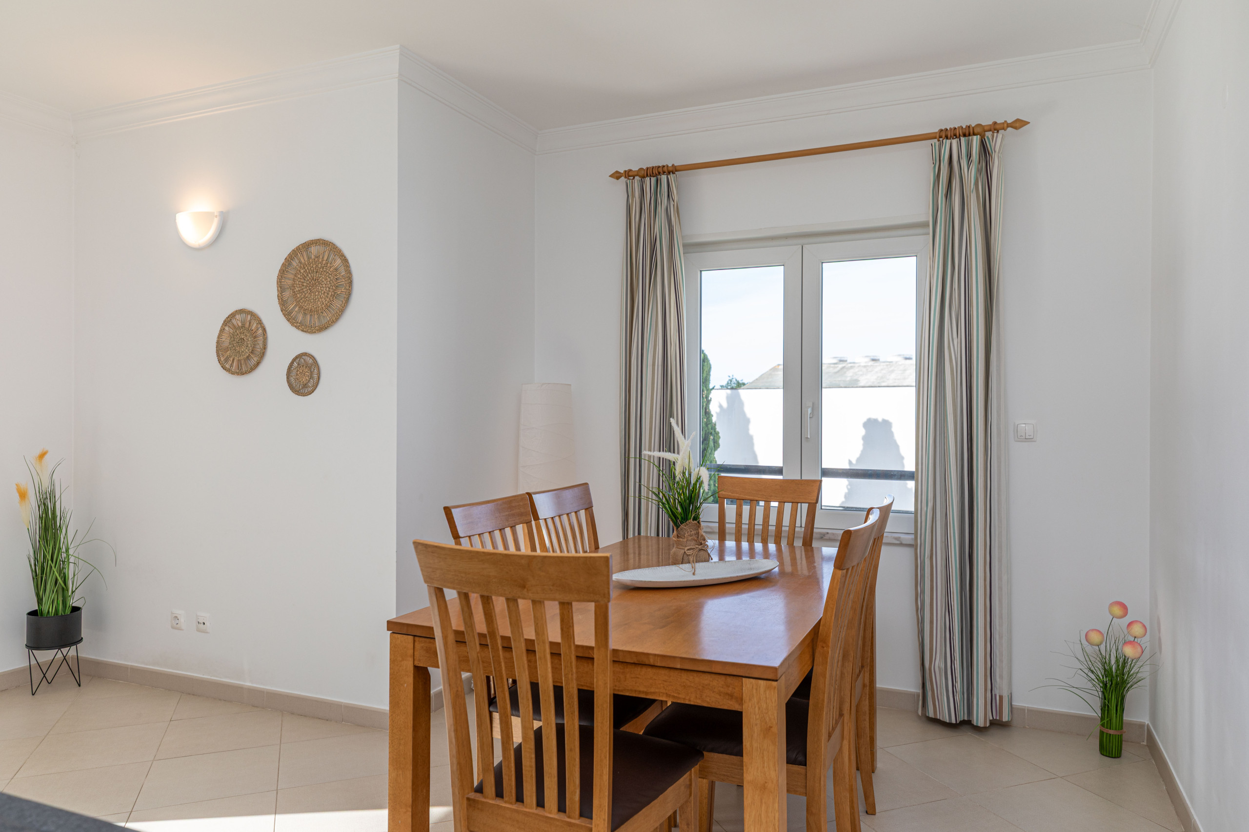 Franchissez la porte d'entrée et entrez dans un salon chaleureux et accueillant qui vous invite à vous blottir avec un livre, à profiter d'un après-midi tranquille ou simplement à vous détendre en paix. Une fenêtre double donne sur la piscine commune des résidents, avec une table basse de bistrot parfaite pour le café du matin. Pour votre divertissement, il y a le Wi-Fi et une télévision avec une large sélection de chaînes en portugais et en anglais pour tous les goûts.