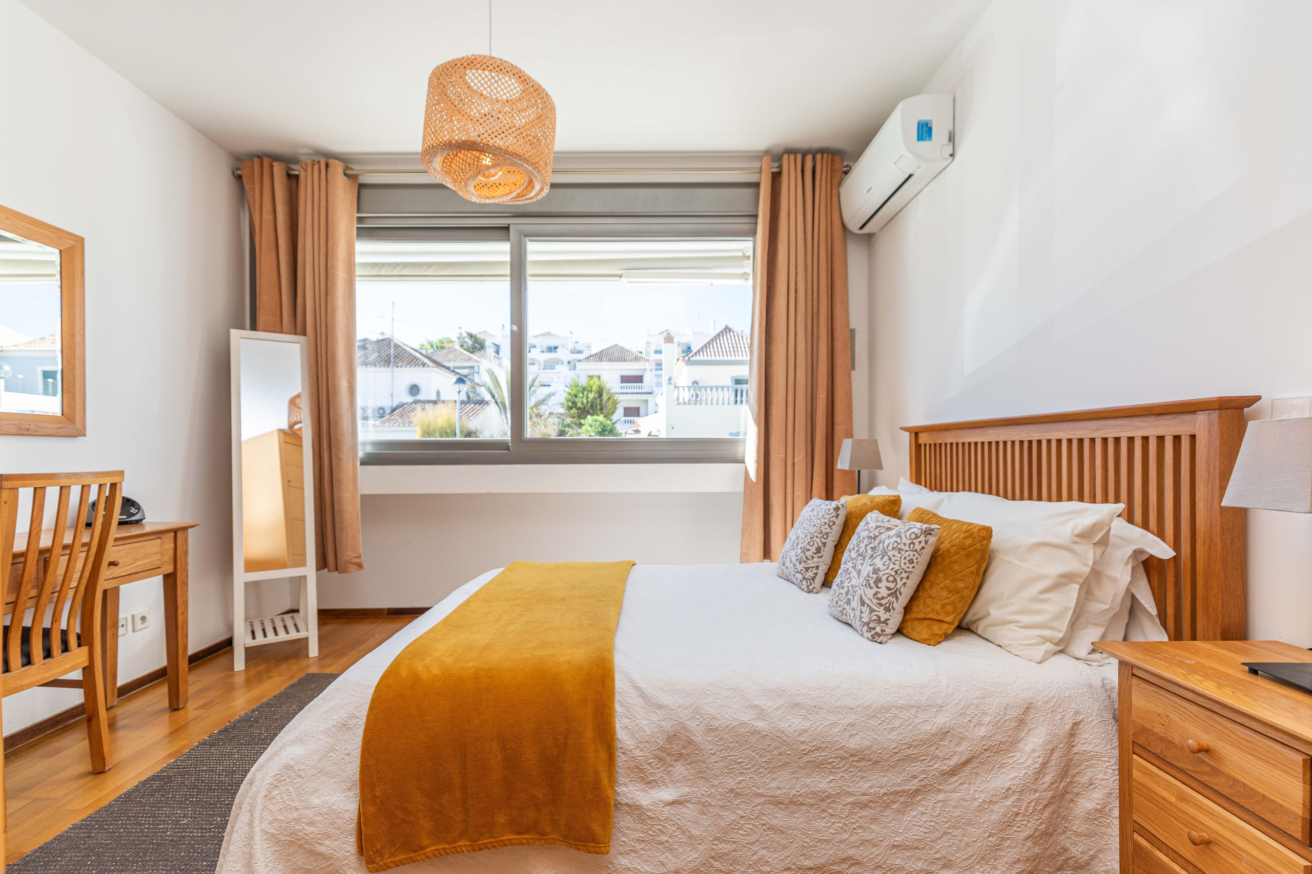 À l'arrière de l'appartement, vous trouverez une chambre spacieuse, avec un lit king-size douillet, des armoires intégrées pour vos essentiels de vacances, et une climatisation rafraîchissante pour vous garder au frais pendant les journées ensoleillées de l'Algarve. Juste à côté, la salle de bain propose une baignoire complète avec une douche suspendue - idéale pour un bain apaisant ou un rafraîchissement rapide après une journée à la plage.