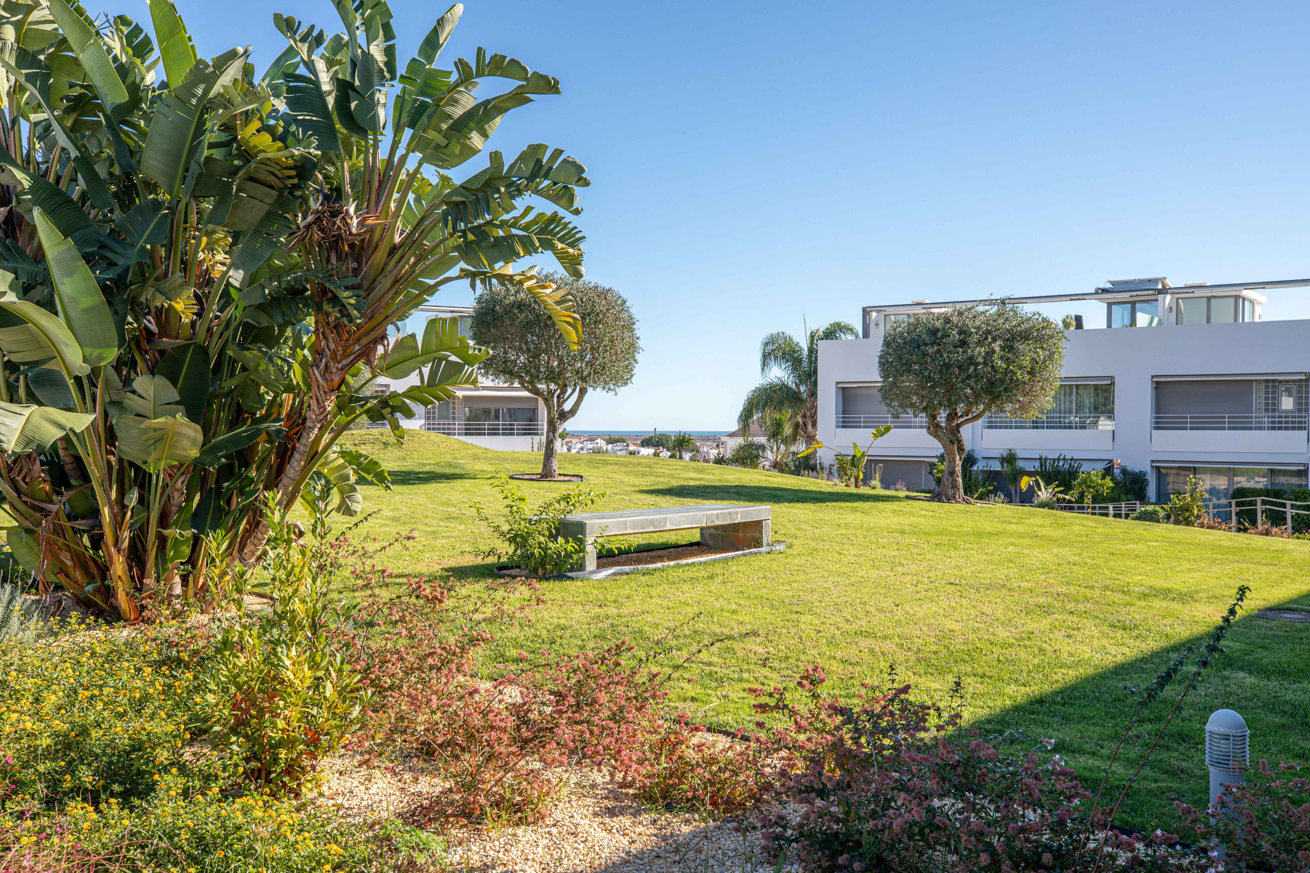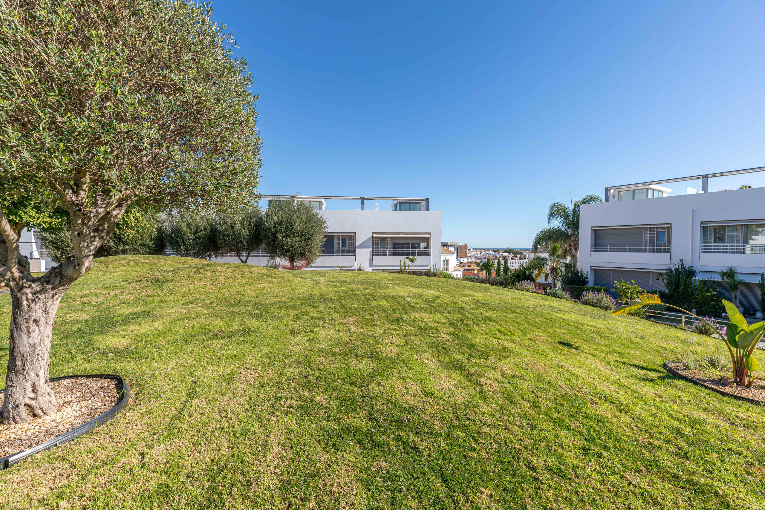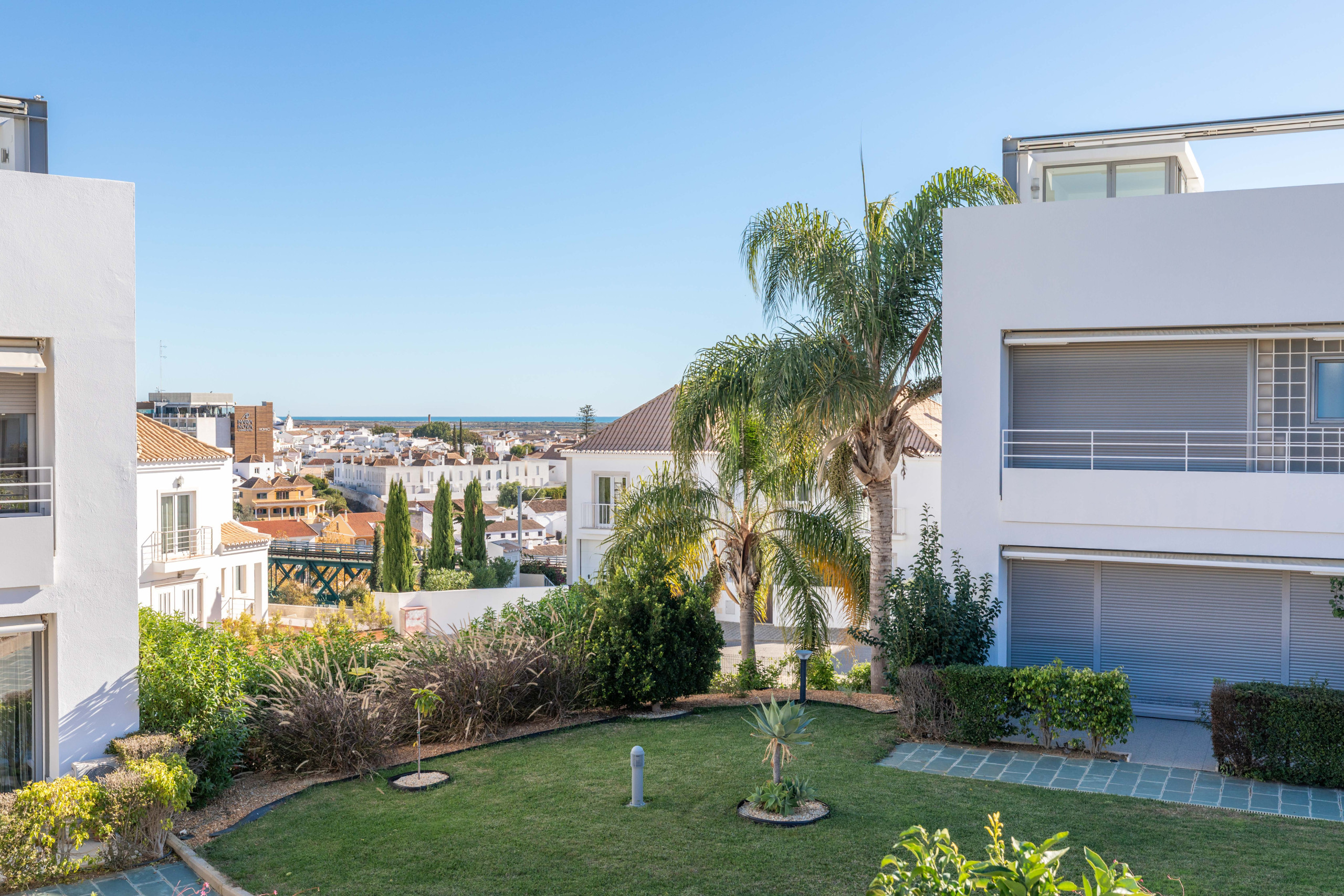 À l'extérieur, l'appartement dispose d'une terrasse ombragée avec une table et des chaises, idéale pour les sundowners tout en profitant des vues sur les jardins magnifiquement entretenus. Les jardins sont entourés de terrasses en bois, d'une pelouse luxuriante, d'arbustes matures et d'oliviers, qui encadrent une piscine bleue scintillante. La zone de la piscine comprend une piscine principale pour les adultes et une section peu profonde pour les jeunes enfants, ce qui en fait un endroit parfait pour les activités familiales. La copropriété est sécurisée par un portail, offrant un environnement sûr pour les enfants, et l'appartement n'est qu'à quelques pas de la piscine. L'emplacement sur les hauteurs de la colline offre une vue imprenable sur la ville de Tavira et sur l'océan.