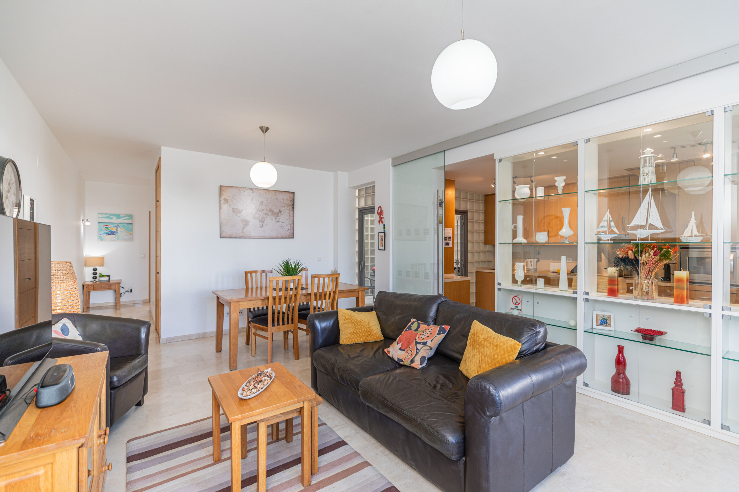 Franchissez la porte d'entrée et entrez dans un salon chaleureux et accueillant qui vous invite à vous blottir avec un livre, à profiter d'un après-midi tranquille ou simplement à vous détendre en paix. Une fenêtre double donne sur la piscine commune des résidents, avec une table basse de bistrot parfaite pour le café du matin. Pour votre divertissement, il y a le Wi-Fi et une télévision avec une large sélection de chaînes en portugais et en anglais pour tous les goûts.