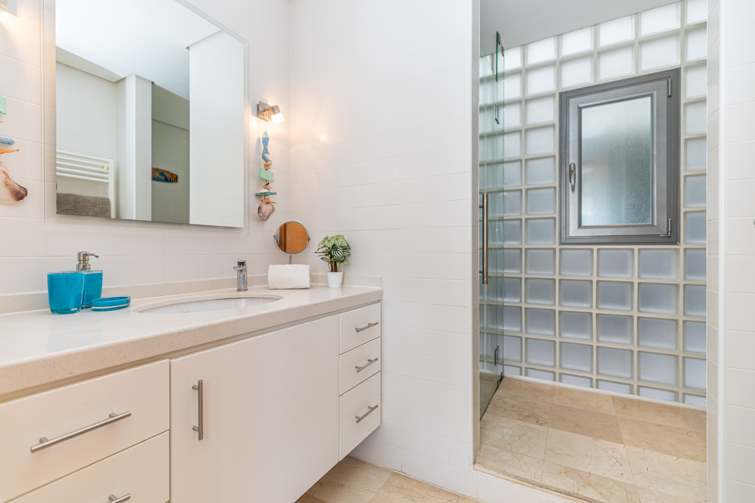 À l'arrière de l'appartement, vous trouverez une chambre spacieuse, avec un lit king-size douillet, des armoires intégrées pour vos essentiels de vacances, et une climatisation rafraîchissante pour vous garder au frais pendant les journées ensoleillées de l'Algarve. Juste à côté, la salle de bain propose une baignoire complète avec une douche suspendue - idéale pour un bain apaisant ou un rafraîchissement rapide après une journée à la plage.