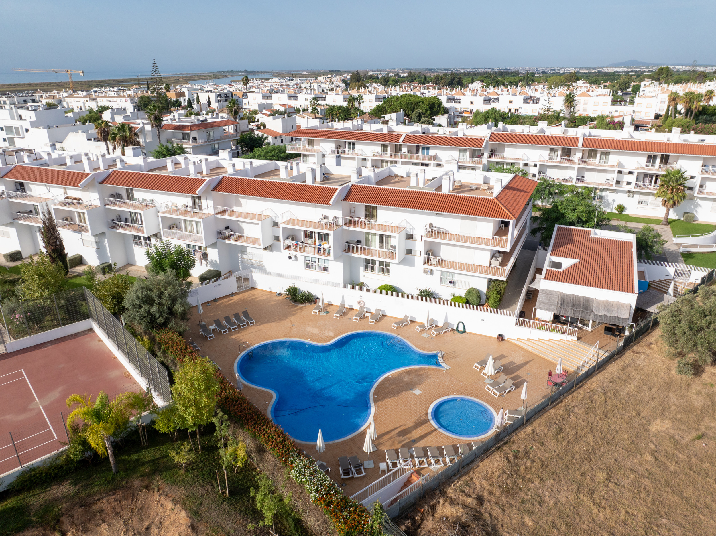 Appartement Vasco da Gama est un superbe penthouse de 2 chambres dans la résidence recherchée de Costa de Cabanas, à quelques minutes à pied du front de mer, du bateau de plage et du charmant village de pêcheurs de Cabanas. Profitez d'un espace de vie ouvert avec une cuisine entièrement équipée et un salon entourés de balcons et d'une terrasse solarium sur le toit. Location parfaite toute l'année : profitez de la piscine des résidents en été - profitez du soleil de l'Algarve en hiver. L'escapade parfaite pour les amoureux de la plage et les chercheurs de soleil !