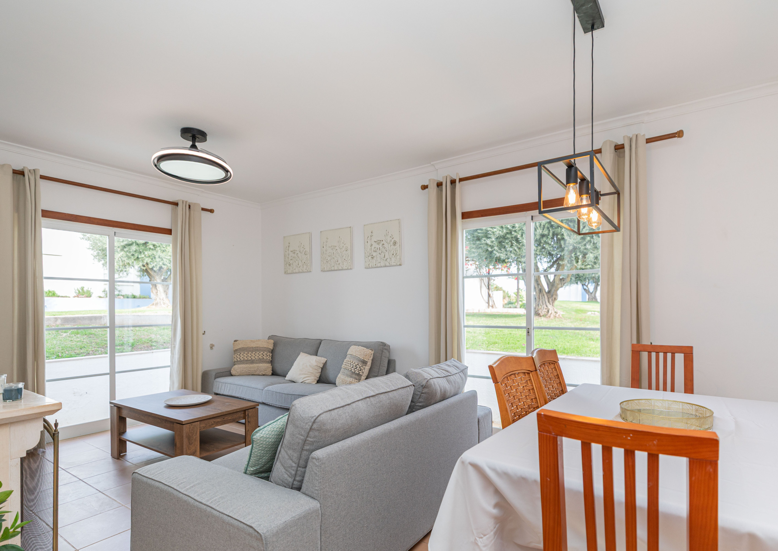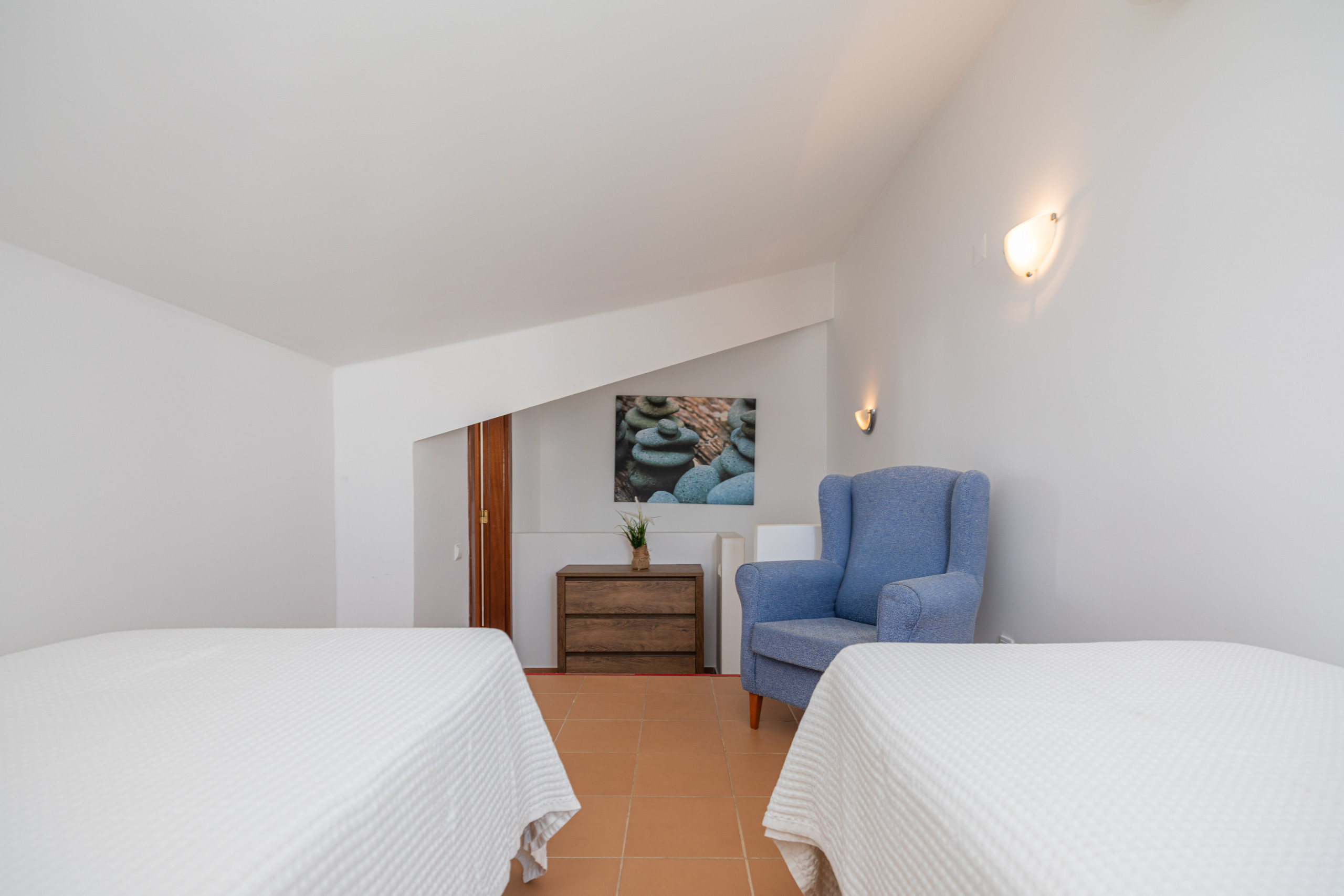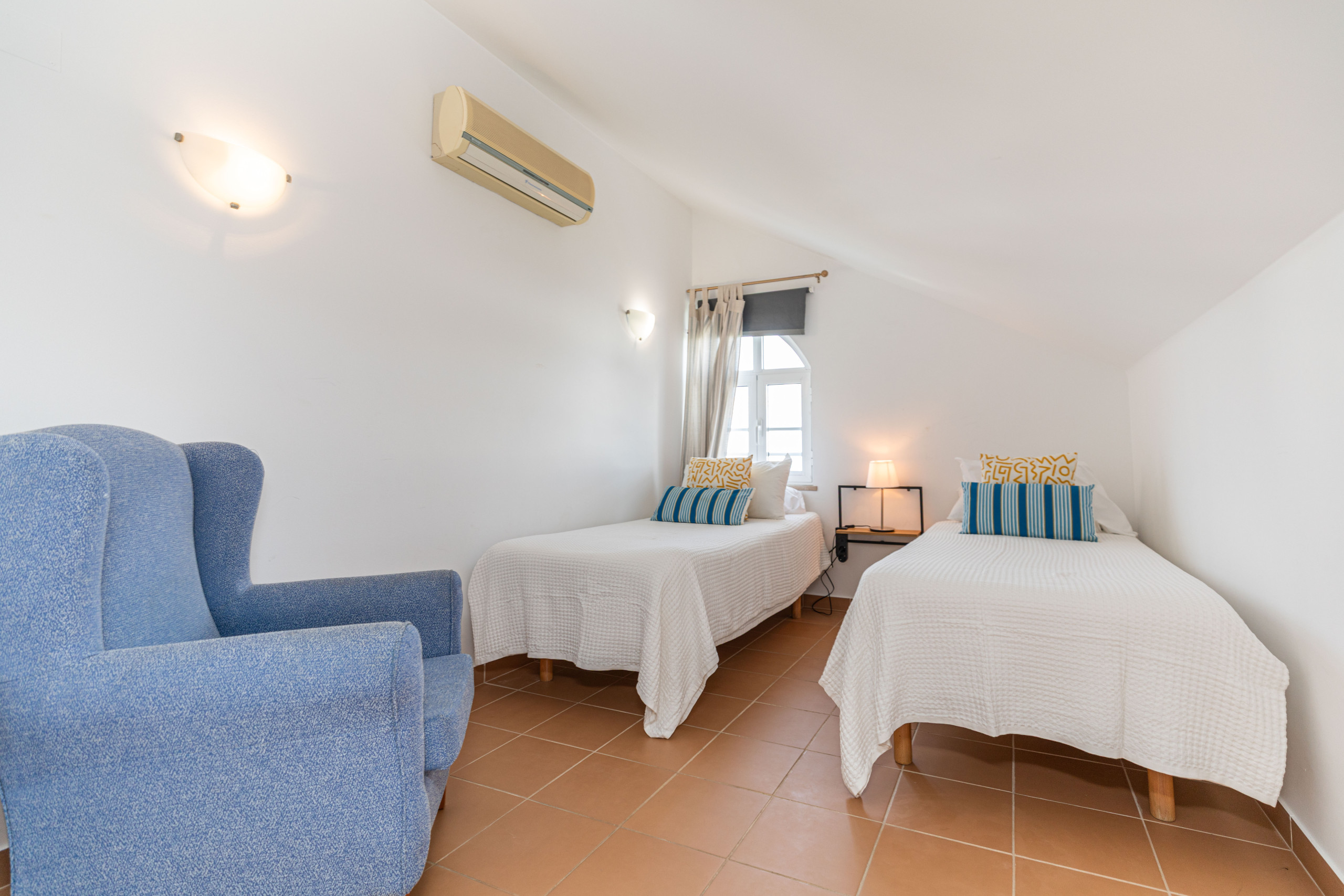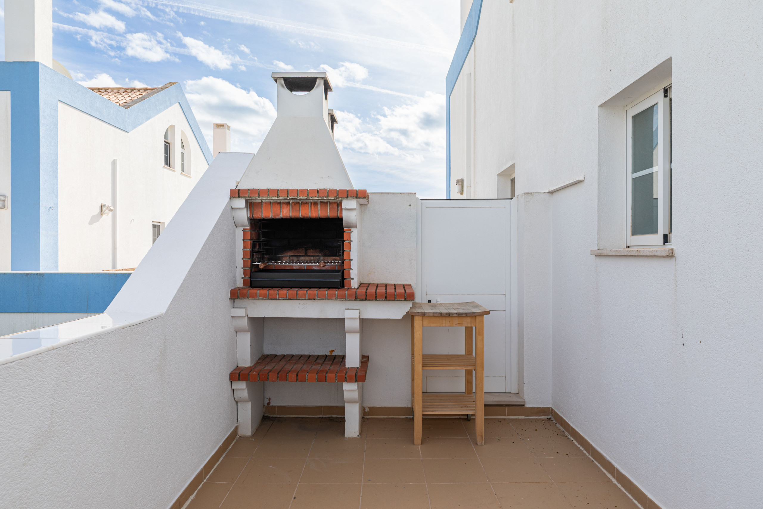 Le townhouse dispose d'une belle terrasse privée au premier étage, accessible directement depuis la chambre avec un lit king-size. Cet espace ensoleillé est parfait pour se détendre avec un verre, déguster un repas léger à la table à manger, ou se prélasser sur les transats tout en profitant d'une vue panoramique sur la piscine scintillante en contrebas et la charmante ville de Tavira. Un barbecue traditionnel ajoute la touche parfaite pour des repas en plein air et des rassemblements familiaux.