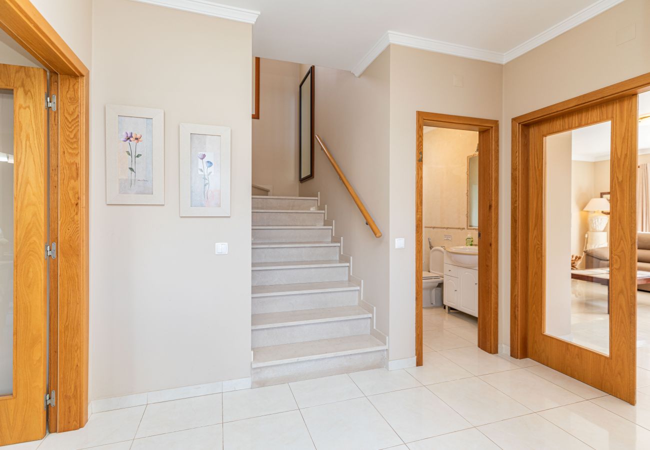 Cette superbe villa familiale est un choix fabuleux pour les invités cherchant à combiner une piscine et des vacances à la plage. La décoration lumineuse et gaie dégage une ambiance accueillante, et un soin particulier a été apporté à chaque petit détail. Le salon et la salle à manger spacieux et ouverts donnent sur la piscine, avec une cuisine adjacente entièrement équipée offrant une généreuse provision d'ustensiles et d'espace de rangement. La conception de la villa intègre judicieusement une suite de chambre au rez-de-chaussée pour ceux qui préfèrent éviter les escaliers. Les 3 chambres restantes sont situées à l'étage, dont 1 avec une salle de douche privative et les autres partageant une salle de bain avec baignoire. À l'entrée, un pavage de calçada pittoresque entoure la villa, bordé de végétation méditerranéenne et de plantes en pot attrayantes, avec des espaces de patio sécurisés pour que les enfants puissent jouer en toute sécurité. La pergola au bord de la piscine offre un charmant endroit pour un repas à l'ombre – et le barbecue traditionnel en briques est un élément à ne pas manquer pour cuisiner du poisson frais local lors de ces douces soirées d'été.