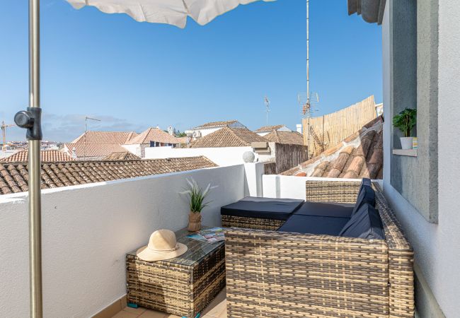 O terraço ensolarado é um magnífico recurso do alojamento. Privado, comprido e mobilado, este é um refúgio acolhedor para quem gosta de se sentar e relaxar. Desfrute do sol de inverno, das vistas para a rua abaixo e dos telhados tavirenses - simplesmente idílico