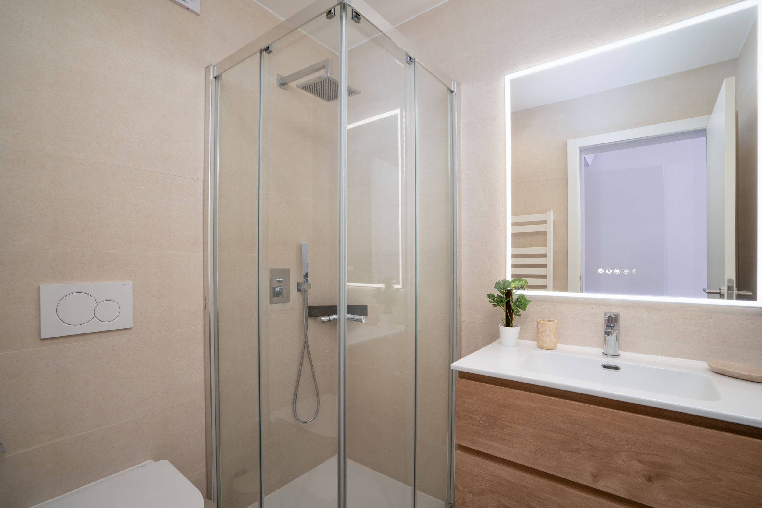 Dois terraços privados envolvem o apartamento, oferecendo múltiplos locais para relaxar ou jantar ao ar livre. Desfrute do café da manhã ou de um copo de vinho à noite enquanto aproveita a quente brisa costeira. O deslumbrante terraço privado no telhado proporciona o refúgio perfeito — com espreguiçadeiras, uma pérgola sombreada e assentos confortáveis para leitura ou reflexão tranquila.