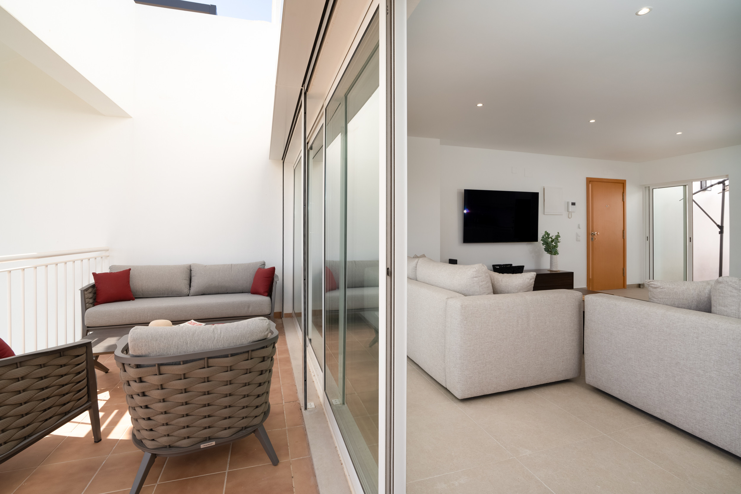 Experimente a combinação perfeita de conforto, estilo e conveniência neste magnífico apartamento de penthouse com dois quartos, idealmente localizado no procurado Costa de Cabanas. Concebido para uma vivência contemporânea e descontraída, esta habitação no último piso oferece uma layout convidativo em planta aberta, cheio de luz natural e charme costeiro.