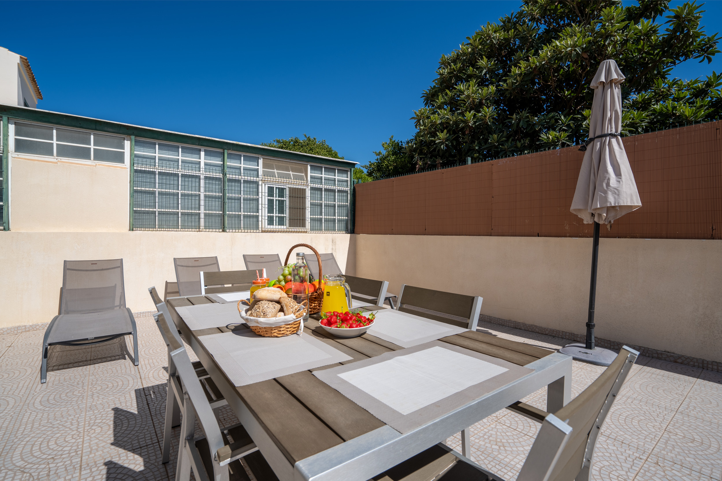 • Pátio de Estar – Desfrute de refeições ao ar livre na grande mesa exterior, perfeita para pequenos-almoços ensolarados ou jantares. Uma toldo retrátil proporciona sombra quando necessário.