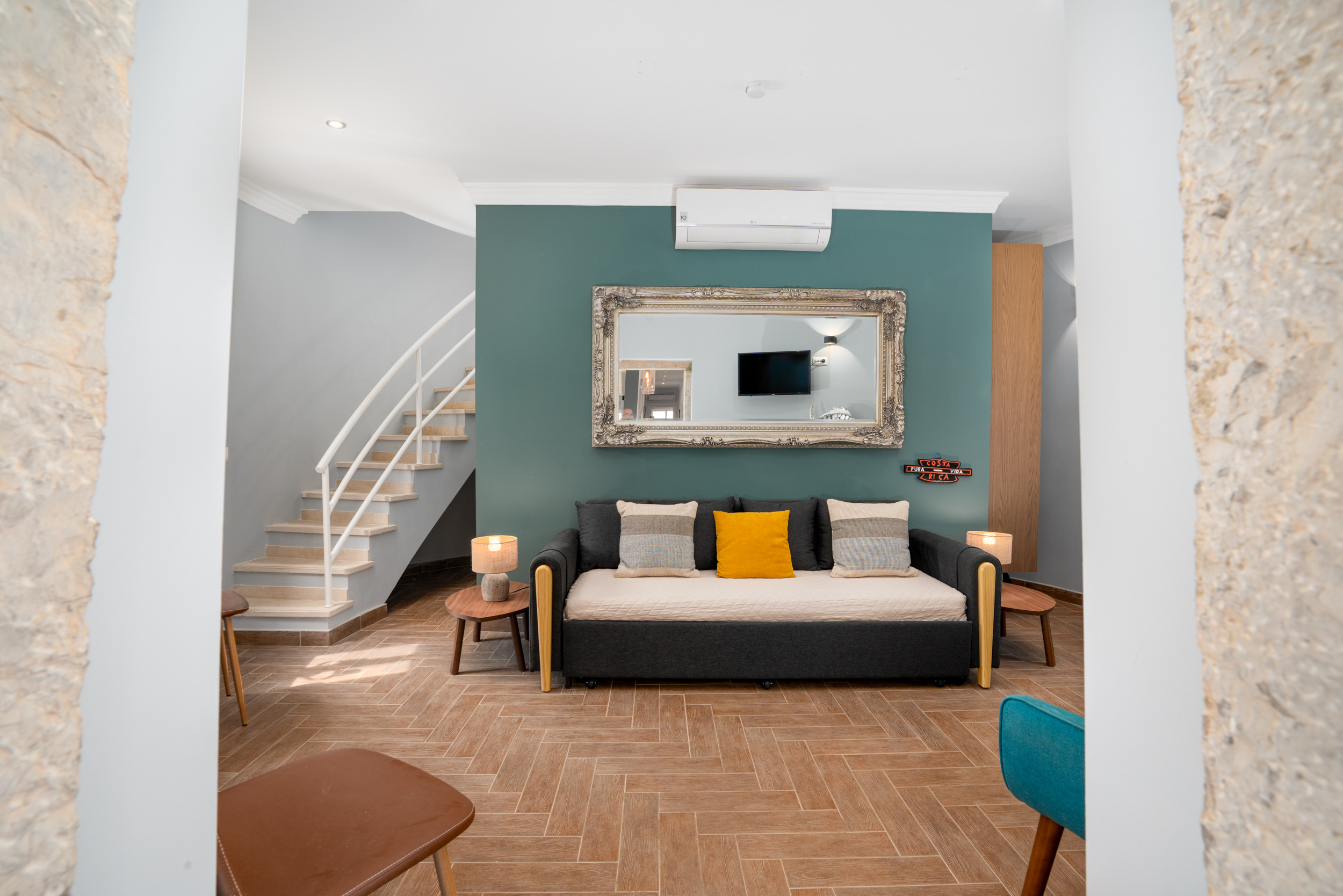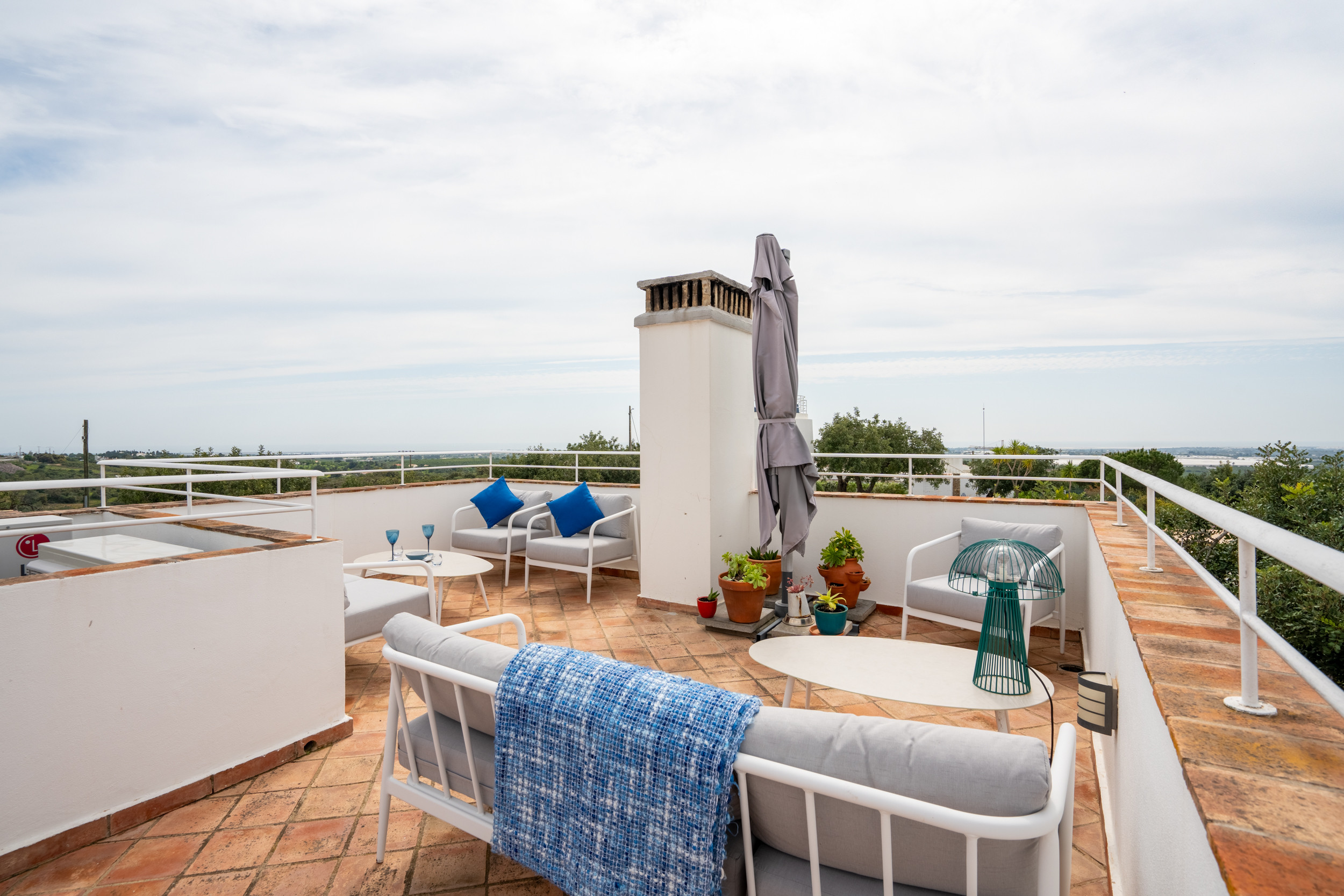 RÉS-DO-CHÃO – Ao entrar através da entrada privada com portão, um corredor espaçoso recebe-o calorosamente, com quartos ramificando-se em ambos os lados. Posicionado convenientemente para aqueles que preferem acomodações no rés-do-chão, um quarto com duas camas espera à esquerda, enquanto um quarto de casal aguarda à direita. Seguindo em frente, encontrará a luminosa e arejada sala de estar e sala de jantar combinadas, oferecendo um refúgio do sol e vistas cativantes. Aqui, pode relaxar ou desfrutar de uma experiência de jantar sofisticada na grande mesa de madeira acompanhada por cadeiras correspondentes. Adjacente à sala de estar e sala de jantar, a cozinha totalmente equipada transita harmoniosamente para um terraço superior de refeições ao ar livre, sombreado e convenientemente posicionado junto a um tradicional churrasco e um balcão de preparação de alimentos. Este espaço é perfeito para almoços descontraídos e para abraçar as maravilhosas vistas que se estendem sobre os telhados de Tavira, alcançando majestosamente o mar.