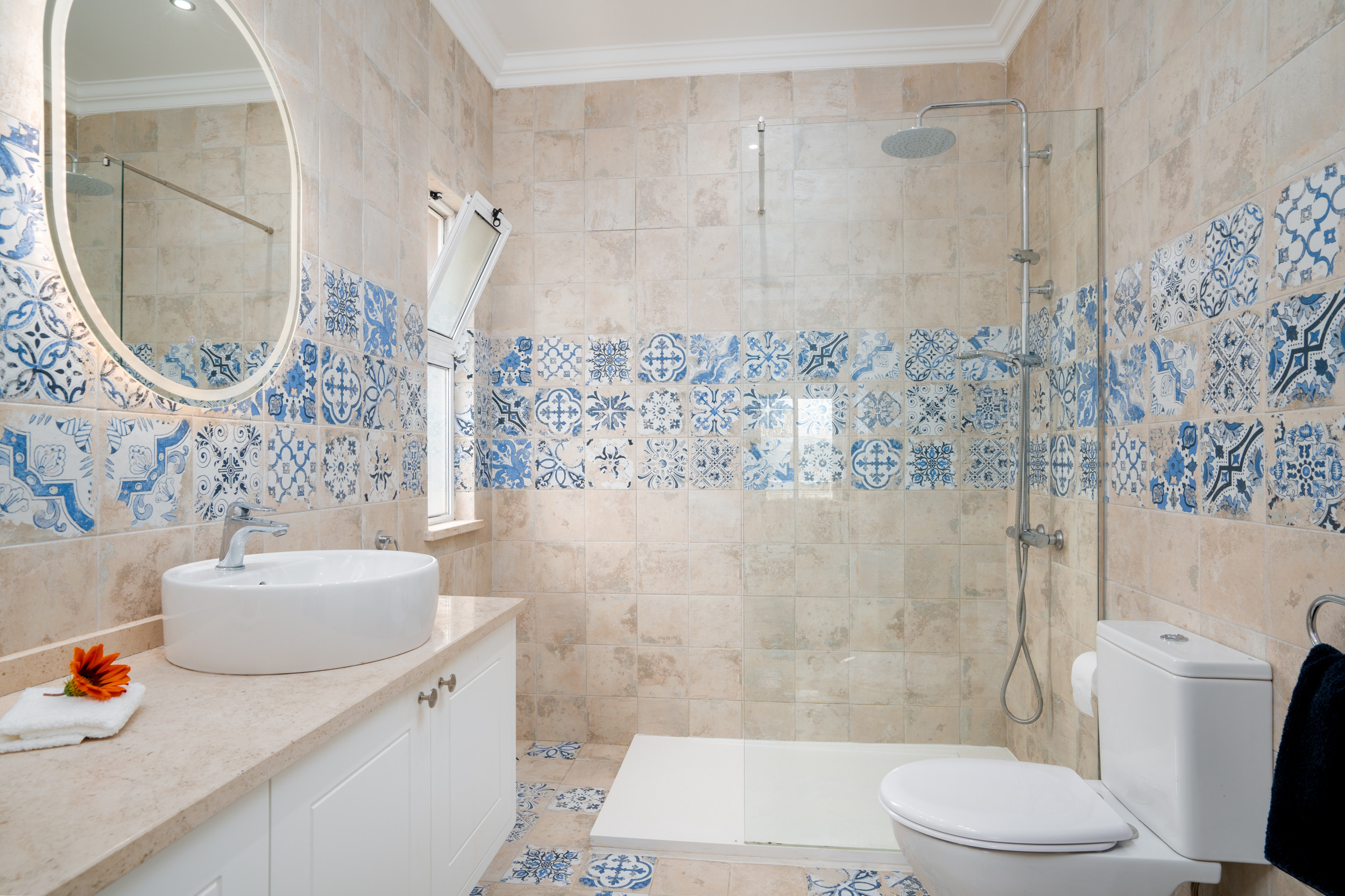 PRIMEIRO ANDAR – Para aqueles que preferem descansar no primeiro andar, a villa oferece a escolha de um quarto principal com casa de banho privativa com chuveiro, bem como dois quartos duplos adicionais, todos com roupeiros embutidos. Os quartos duplos partilham uma casa de banho, garantindo conveniência e conforto.
