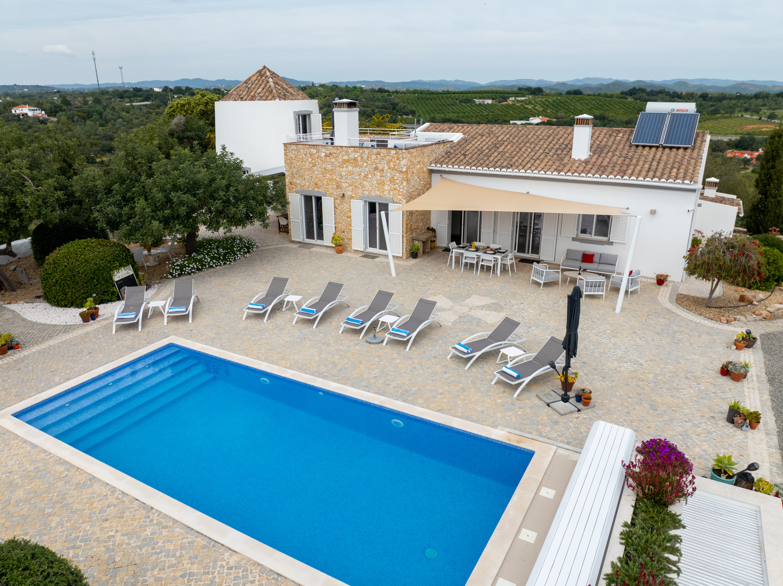 FORA DO ESPAÇO - Para além do interior espaçoso, as áreas exteriores de lazer são um verdadeiro deleite. A grande quinta está aninhada entre jardins maduros com oliveiras, alfarrobeiras, arbustos mediterrânicos e outros interessantes suculentos. Os jardins e relvados abraçam a quinta, com um local de refeições ao ar livre sombreado onde pode desfrutar de almoços preguiçosos com vista para a relva verde deslumbrante e o lago com peixes coloridos que irão encantar as crianças. A característica mais espetacular da casa é a piscina. Situada numa posição elevada atrás da casa, e rodeada de relva verde, terraços e videiras estendidas, a água é limpa e azul, oferecendo o local perfeito para as famílias desfrutarem de um dia tranquilo na piscina, onde os adoradores de sol podem relaxar à volta da piscina e aproveitar as espreguiçadeiras para apanhar sol, sem mais nada do que o canto dos pássaros a perturbar a paz, e as crianças podem saltar para dentro e para fora da água fresca e refrescante até ficarem exaustas! Não existem casas nas proximidades imediatas, pelo que aqui é o seu reino privado! Esta é uma casa fabulosa para famílias alargadas desfrutarem de uma pausa juntas. Mas se está à procura de algo brilhante, moderno e novo, então esta não é para si. Aqueles que procuram um ambiente tradicional e rústico irão deliciar-se com esta propriedade maravilhosa e tudo o que representa, que, juntamente com a piscina espetacular, é um tesouro escondido.
