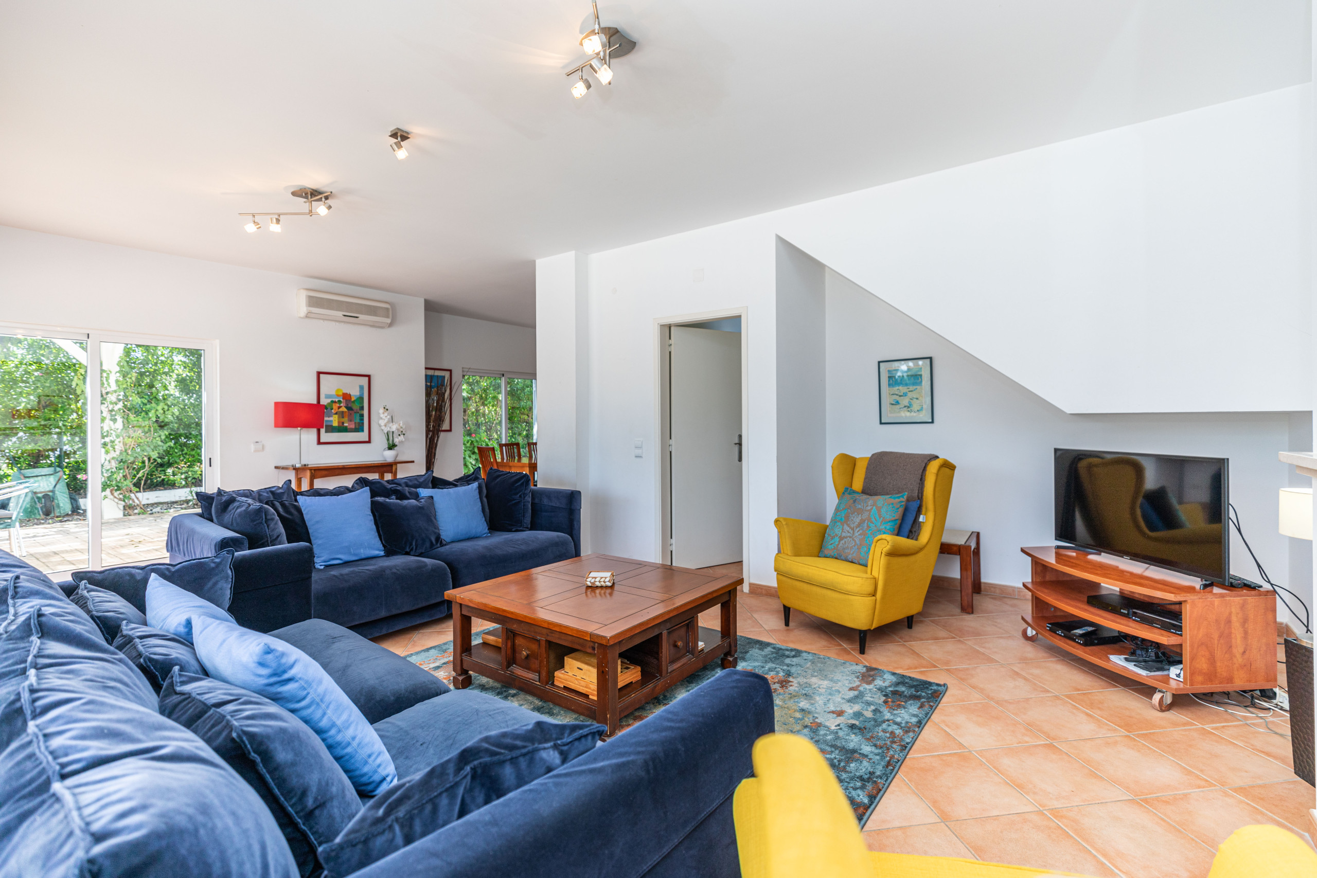O interior da villa está mobilado com bom gosto, com quartos luminosos e espaçosos. Os quartos ocupam todo o primeiro andar da villa, com 1 quarto king size e 3 quartos de casal. 3 quartos têm a sua própria suite de casa de banho/duche, com o 4º quarto a ter acesso a uma sala de duche separada. Siga as escadas até ao segundo andar superior e desfrute das vistas incríveis – perfeito para observação de estrelas durante a noite. O espaço de estar de planta aberta no rés-do-chão inclui uma 5ª casa de banho/WC de hóspedes e uma cozinha bem equipada que garante que cozinhar em casa é um prazer, com uma grande variedade de utensílios e eletrodomésticos de boa qualidade, acompanhados por uma grande mesa de jantar para 8 convidados. O design de planta em forma de L funde-se depois na sala de estar com 2 sofás macios almofadados e uma lareira aberta, ideal para arrendamentos de inverno. Os raios de sol diurnos atravessam as grandes janelas de pátio que percorrem todo o comprimento da área da sala de estar e levam a uma mesa de jantar sombreada com assentos de rattan elegantes. Espreite à volta do canto para encontrar a segunda oportunidade de jantar, com um barbecue tradicional de tijolo e uma área de preparação de alimentos adjacente, tudo aninhado sob uma pérgola florida que proporciona uma experiência al-fresco bonita e pitoresca. Espreguiçadeiras são fornecidas em torno da piscina, que tem dimensões super de 6m x 12m, com pequenos degraus que levam através dos arbustos até ao grande espaço de jardim verde de 1500m2. Toda a propriedade está fechada com portão, completamente privada e segura para as crianças brincarem.