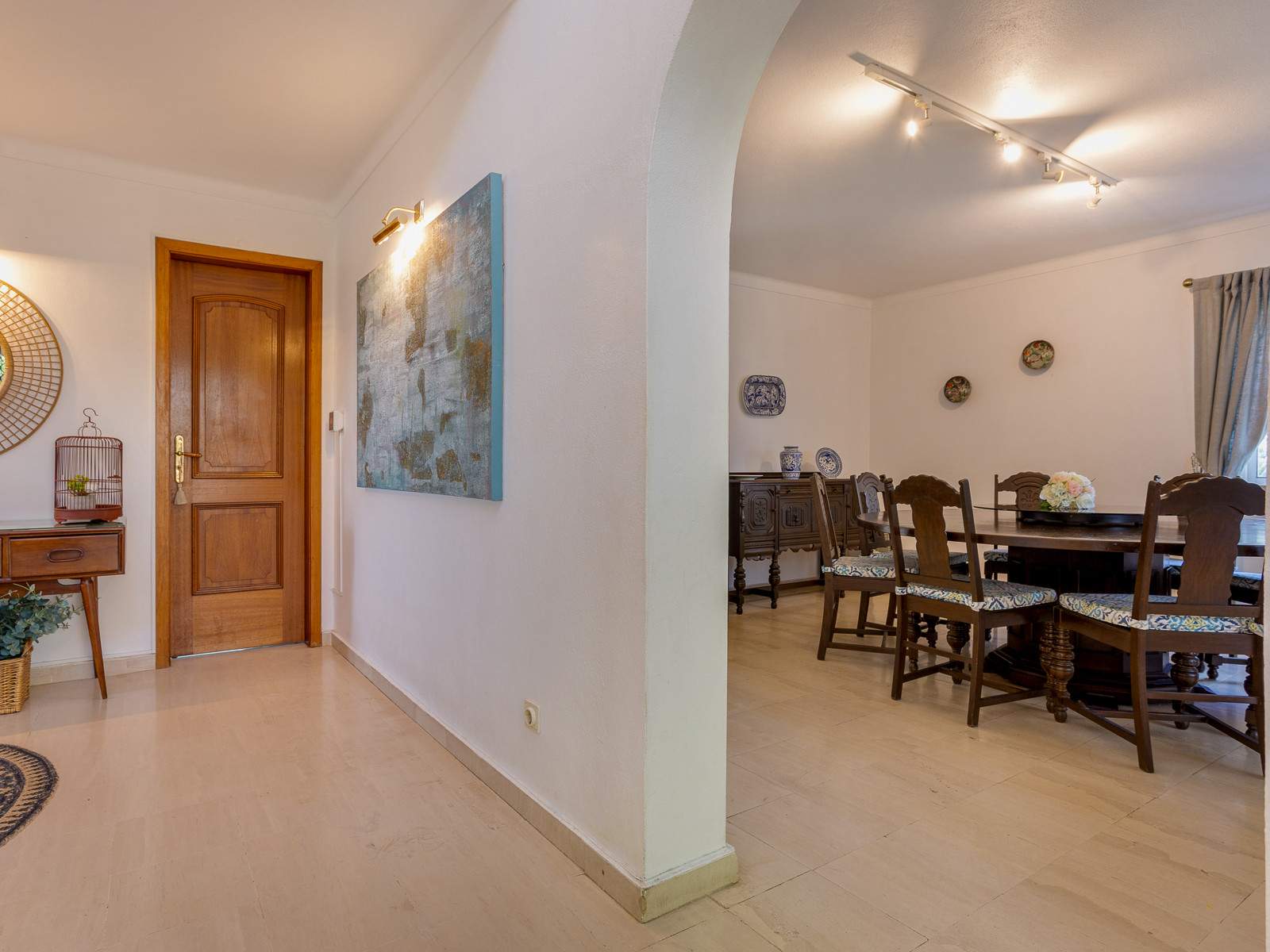 RÉS-DO-CHÃO – Ao entrar através da entrada privada com portão, um corredor espaçoso recebe-o calorosamente, com quartos ramificando-se em ambos os lados. Posicionado convenientemente para aqueles que preferem acomodações no rés-do-chão, um quarto com duas camas espera à esquerda, enquanto um quarto de casal aguarda à direita. Seguindo em frente, encontrará a luminosa e arejada sala de estar e sala de jantar combinadas, oferecendo um refúgio do sol e vistas cativantes. Aqui, pode relaxar ou desfrutar de uma experiência de jantar sofisticada na grande mesa de madeira acompanhada por cadeiras correspondentes. Adjacente à sala de estar e sala de jantar, a cozinha totalmente equipada transita harmoniosamente para um terraço superior de refeições ao ar livre, sombreado e convenientemente posicionado junto a um tradicional churrasco e um balcão de preparação de alimentos. Este espaço é perfeito para almoços descontraídos e para abraçar as maravilhosas vistas que se estendem sobre os telhados de Tavira, alcançando majestosamente o mar.