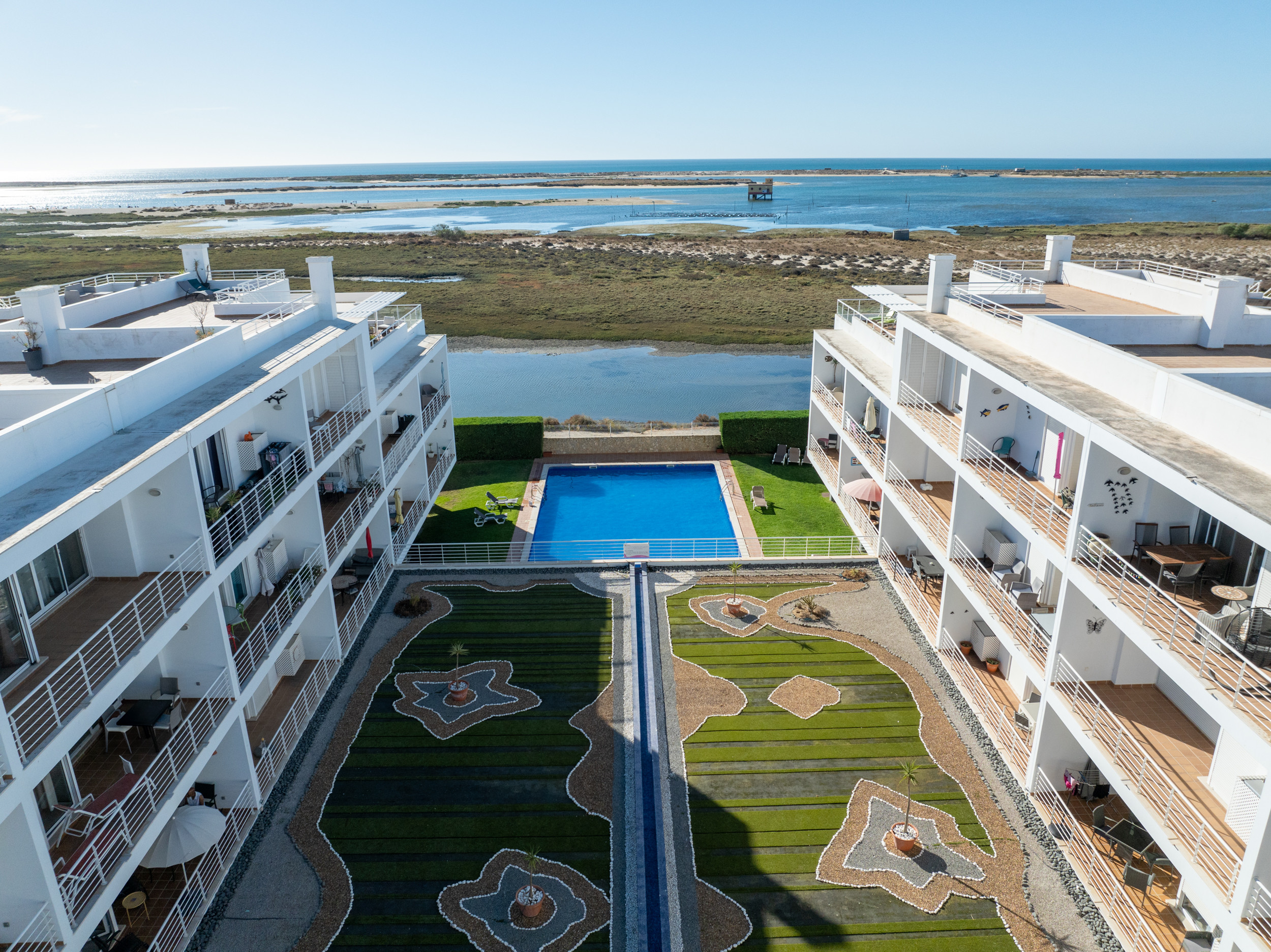 The apartment features a private balcony, perfect for al fresco dining, enjoying a morning coffee, or simply sitting back with a book while taking in the fresh sea air and views of the Ria Formosa.
