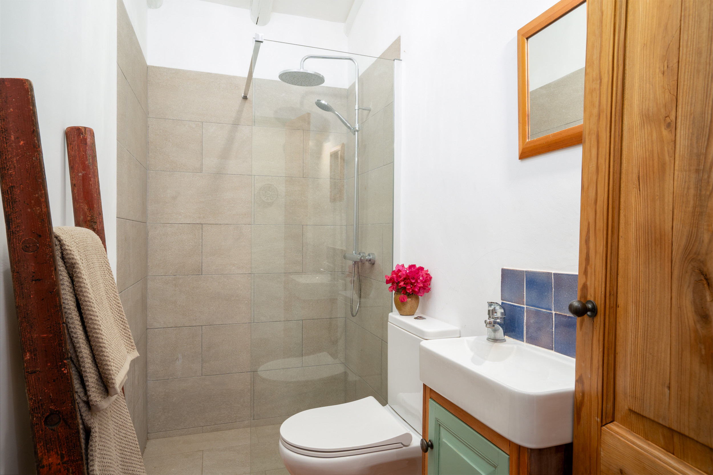 The king-size bedroom boasts a wardrobe and a private bathroom with a rustic walk-in shower and the sofa bed provides extra sleeping space if needed – walk out of bed into the refreshing plunge pool right outside the bedroom door! Combining charm with modern convenience, among the rustic features, air conditioning keeps the space cool and comfortable on warm summer nights or for winter stays, the log burner creates a cozy, inviting atmosphere, perfect for curling up on chilly evenings. 2 single sofa beds available in this cottage for extra guests.
