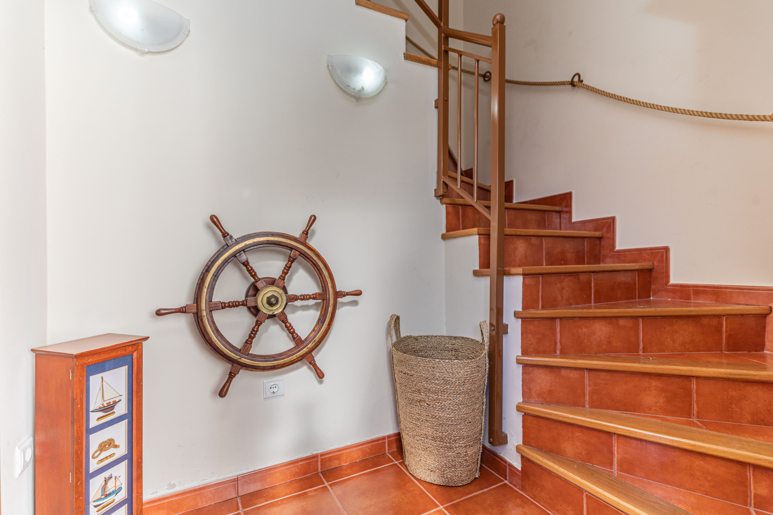 The second floor reveals a charming twin bedroom tucked under the eaves, perfect for friends or children. Step outside to discover a secluded terrace—a private place where you can soak up the sun or enjoy an evening drink in tranquil surroundings. This peaceful outdoor space is a small slice of paradise. Air conditioning on this floor.