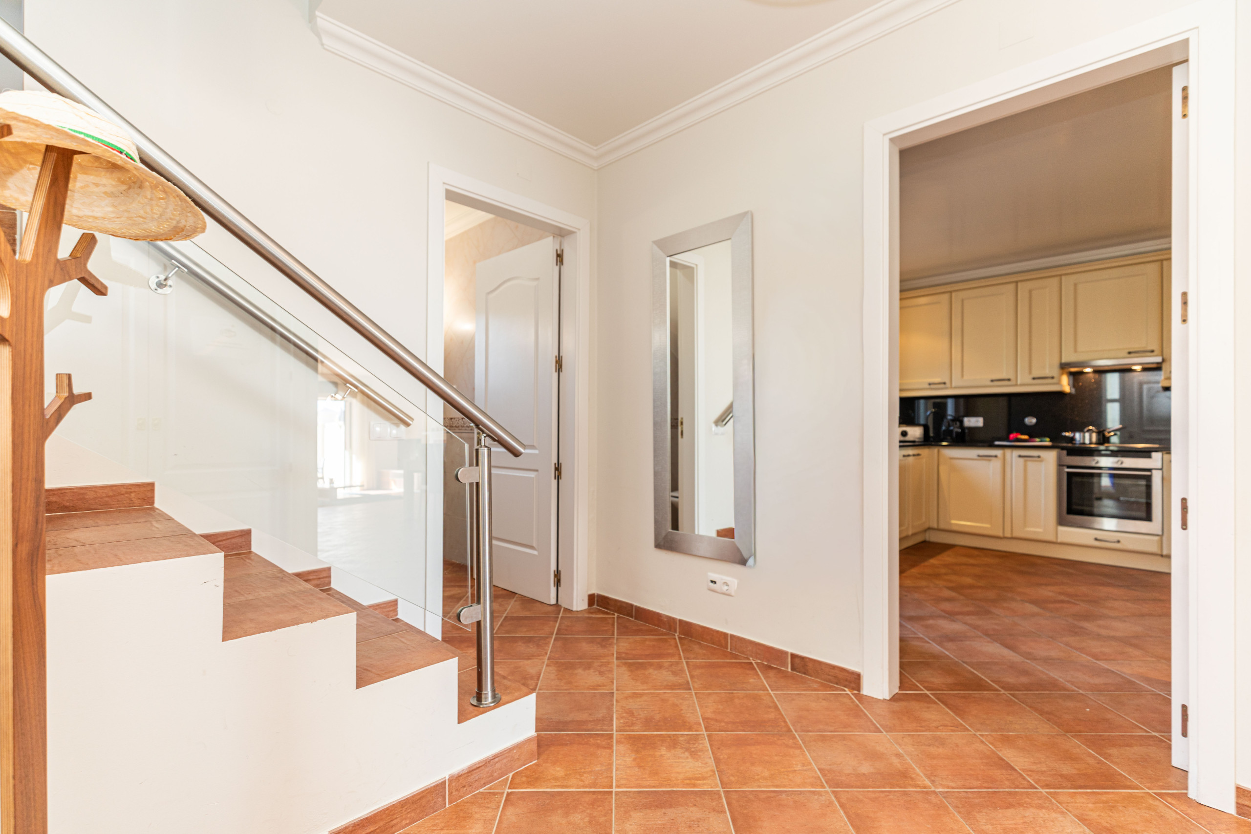 This is private accommodation, and guests have full access to all advertised areas and facilities. The villa is all on one level, with the two secondary bedrooms conveniently located on the ground floor and the master bedroom reached via an internal staircase. There are no steps to enter the villa, and free parking is available directly outside the front door.